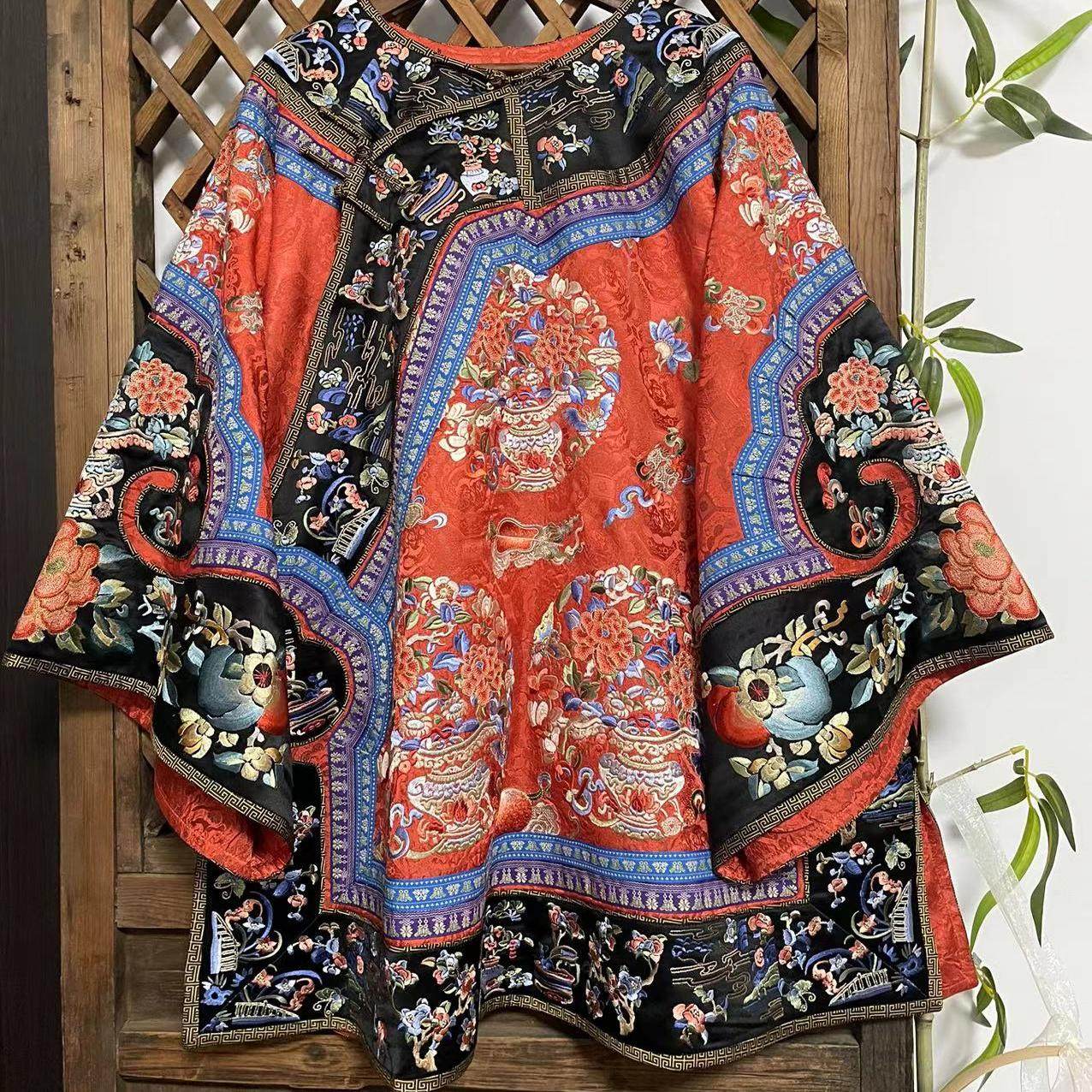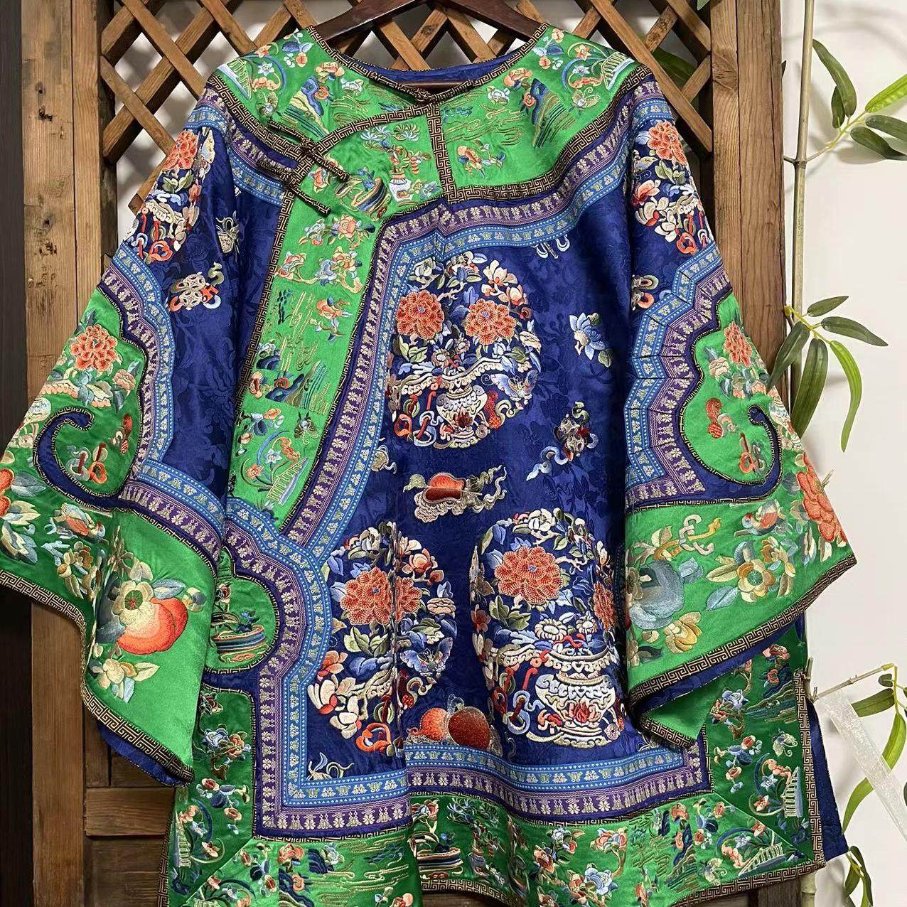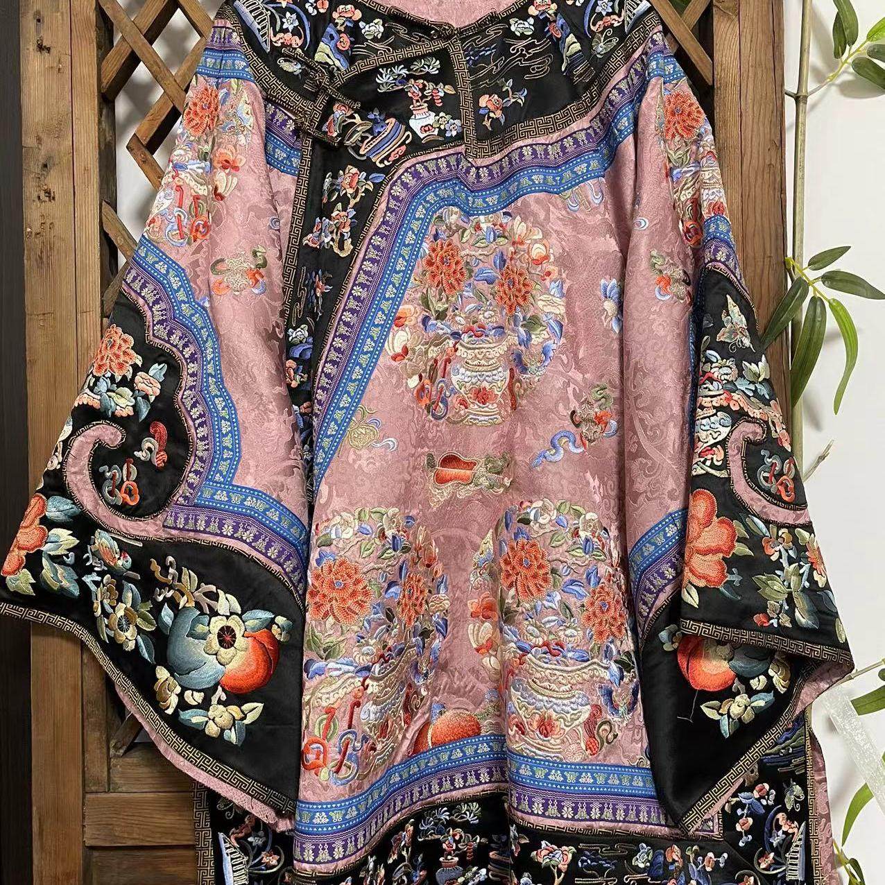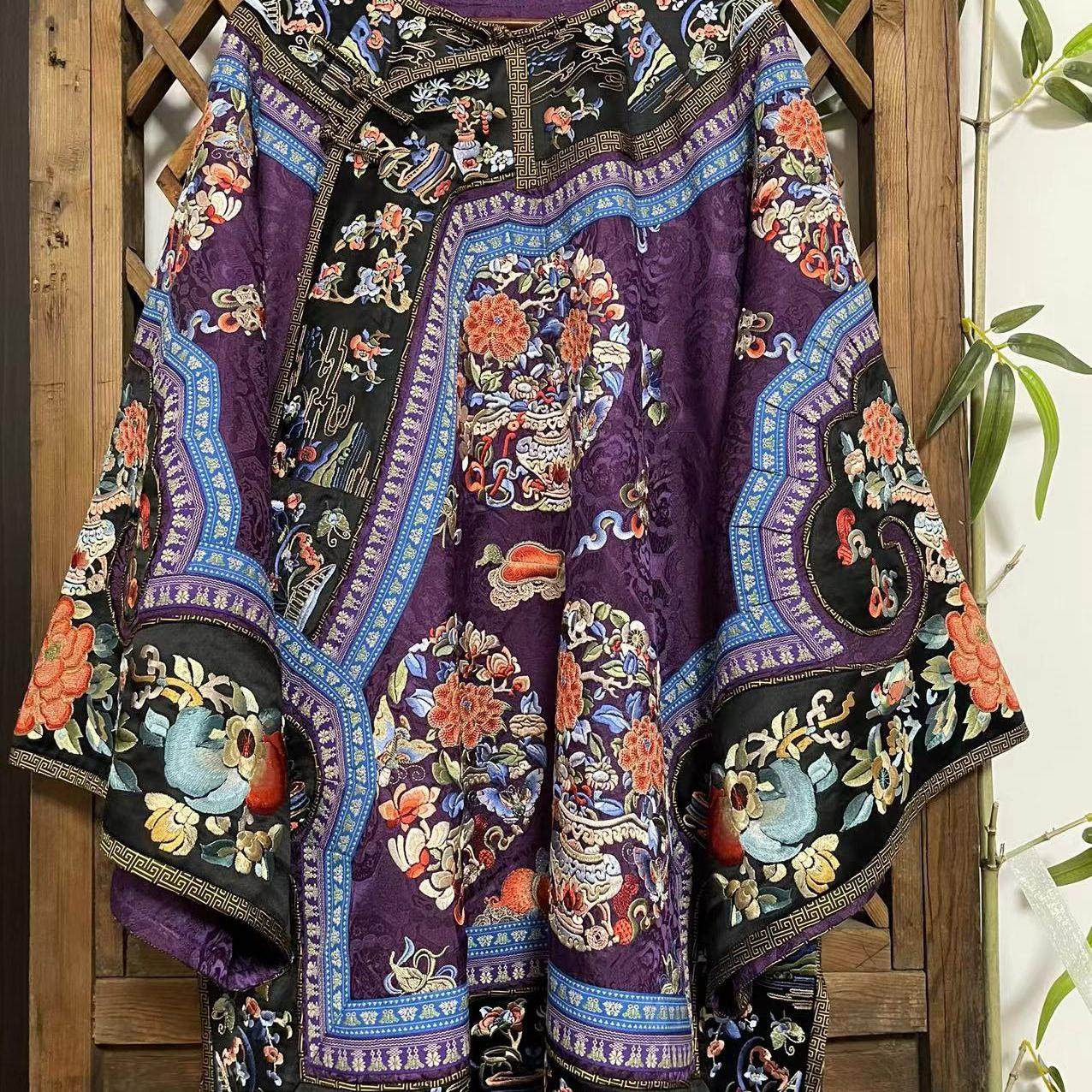 瑜玥传琦原创新款平平安安香云纱博古款打籽绣氅衣斜襟中式清汉服