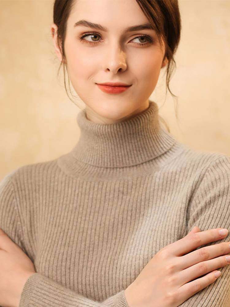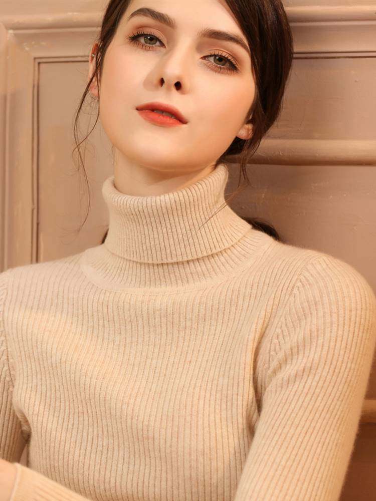 2023秋冬高领毛衣女修身羊毛短款套头洋气长袖内搭针织打底衫加厚