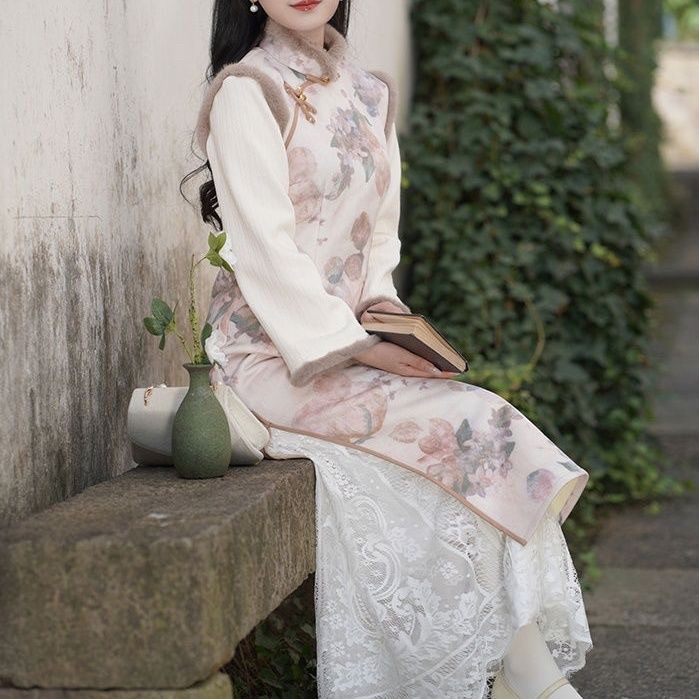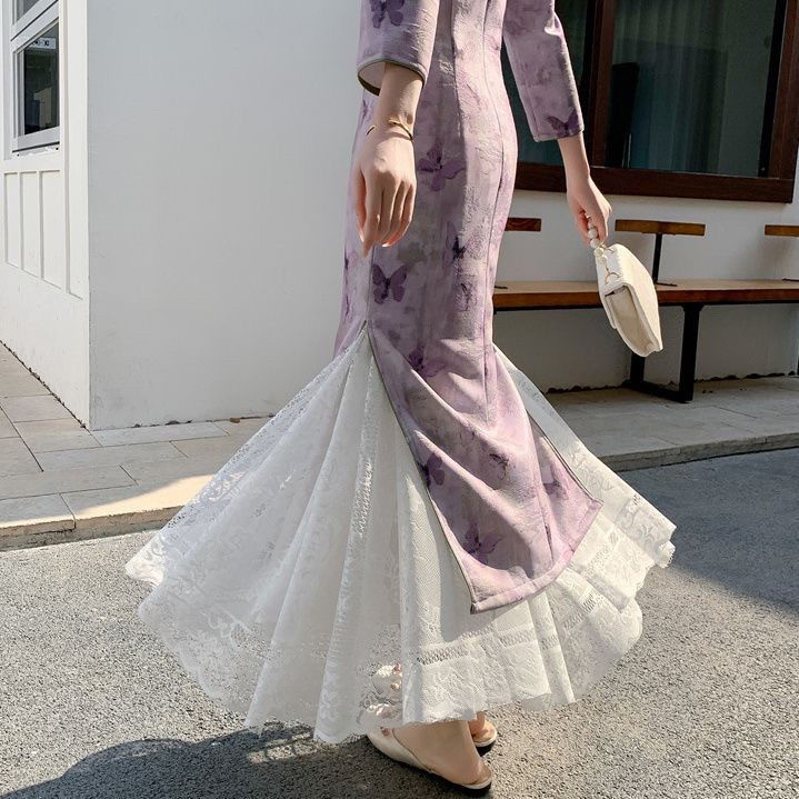 旗袍专用打底衬裙汉服内搭蕾丝半身裙夏季显瘦中长款叠穿大摆裙子