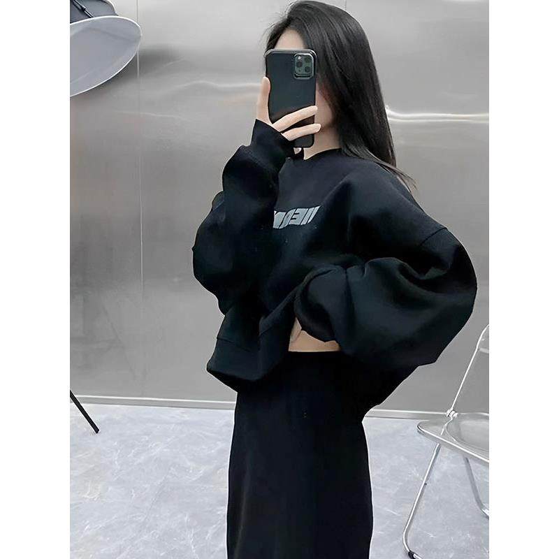 香港胖mm时尚卫衣套装裙流行秋冬穿搭一整套上衣半身裙两件套加绒