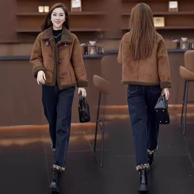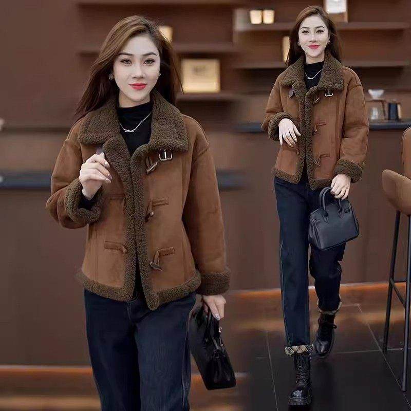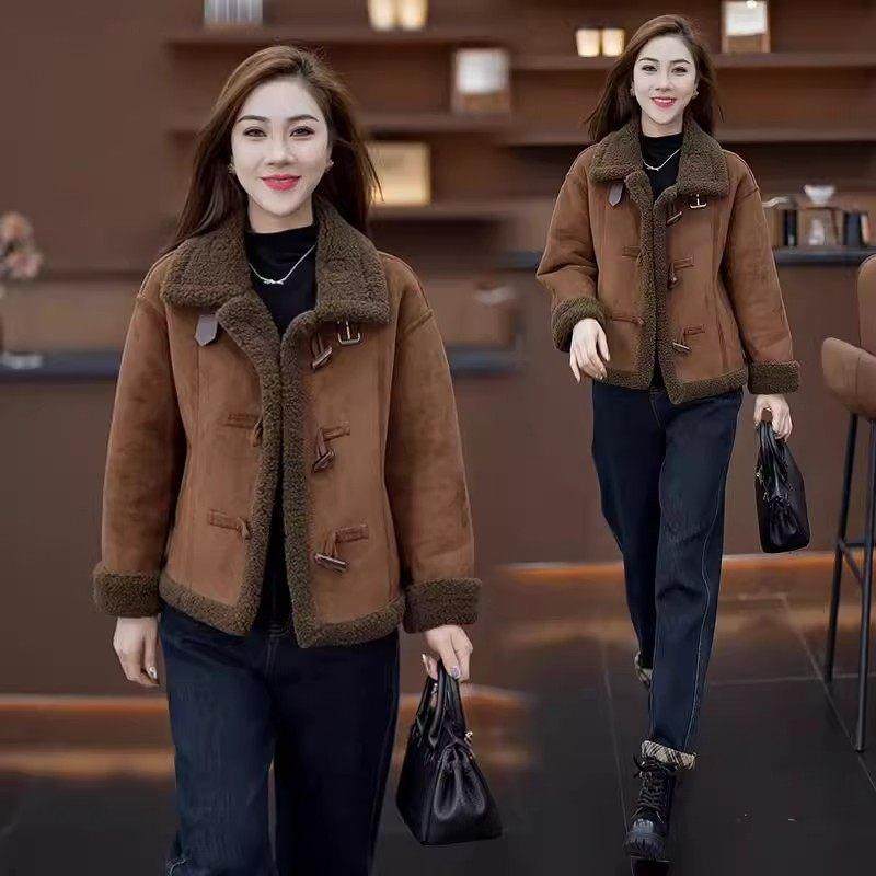 首页> 女装> 香港代购羊羔毛外套女冬季洋气显瘦加厚麂皮绒皮毛一体羊羔绒上衣
