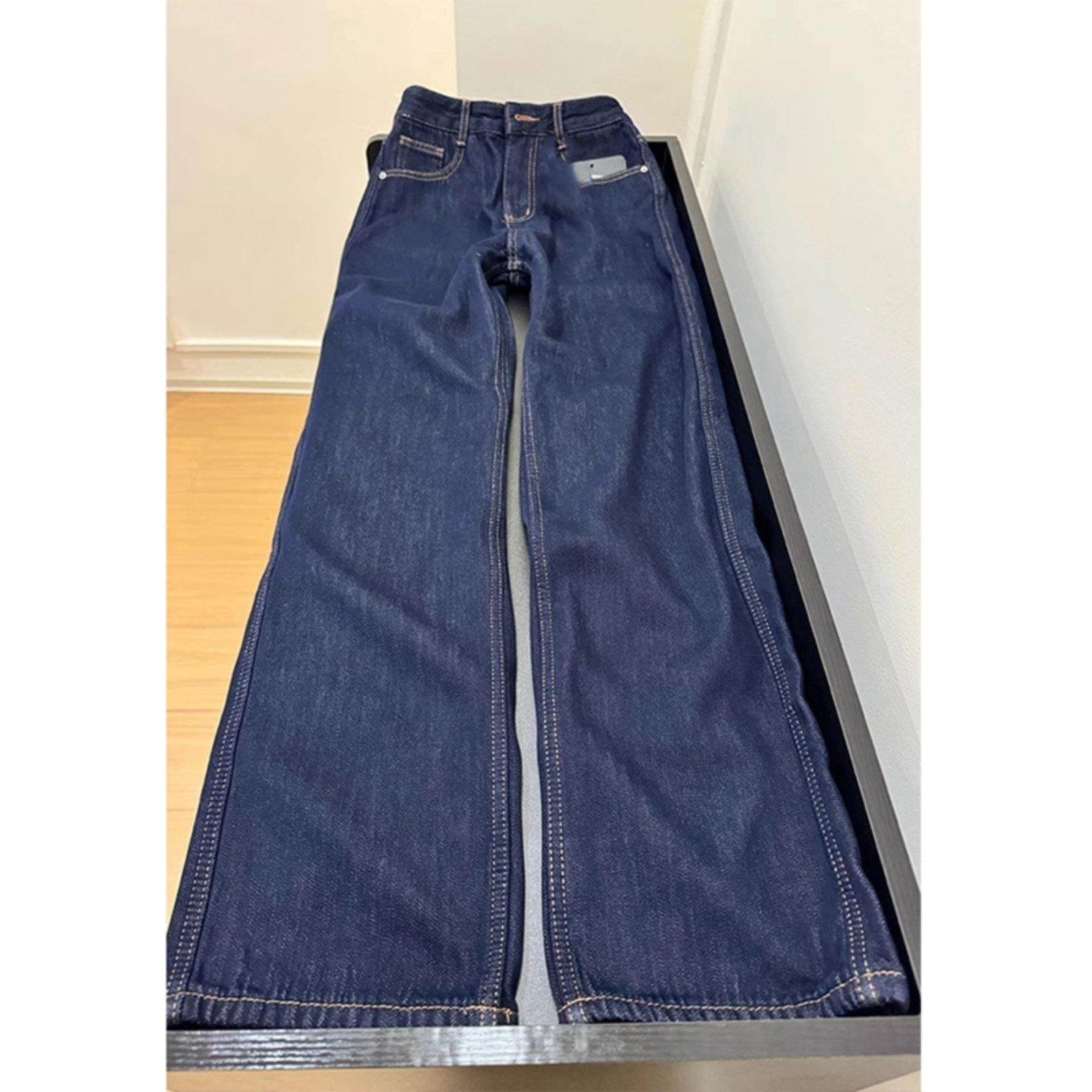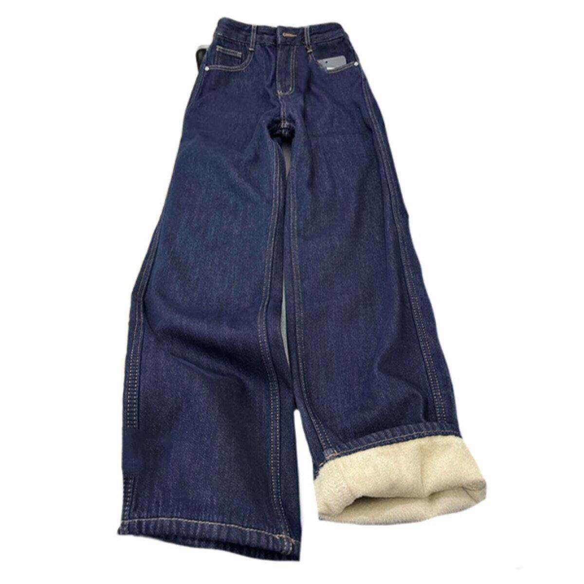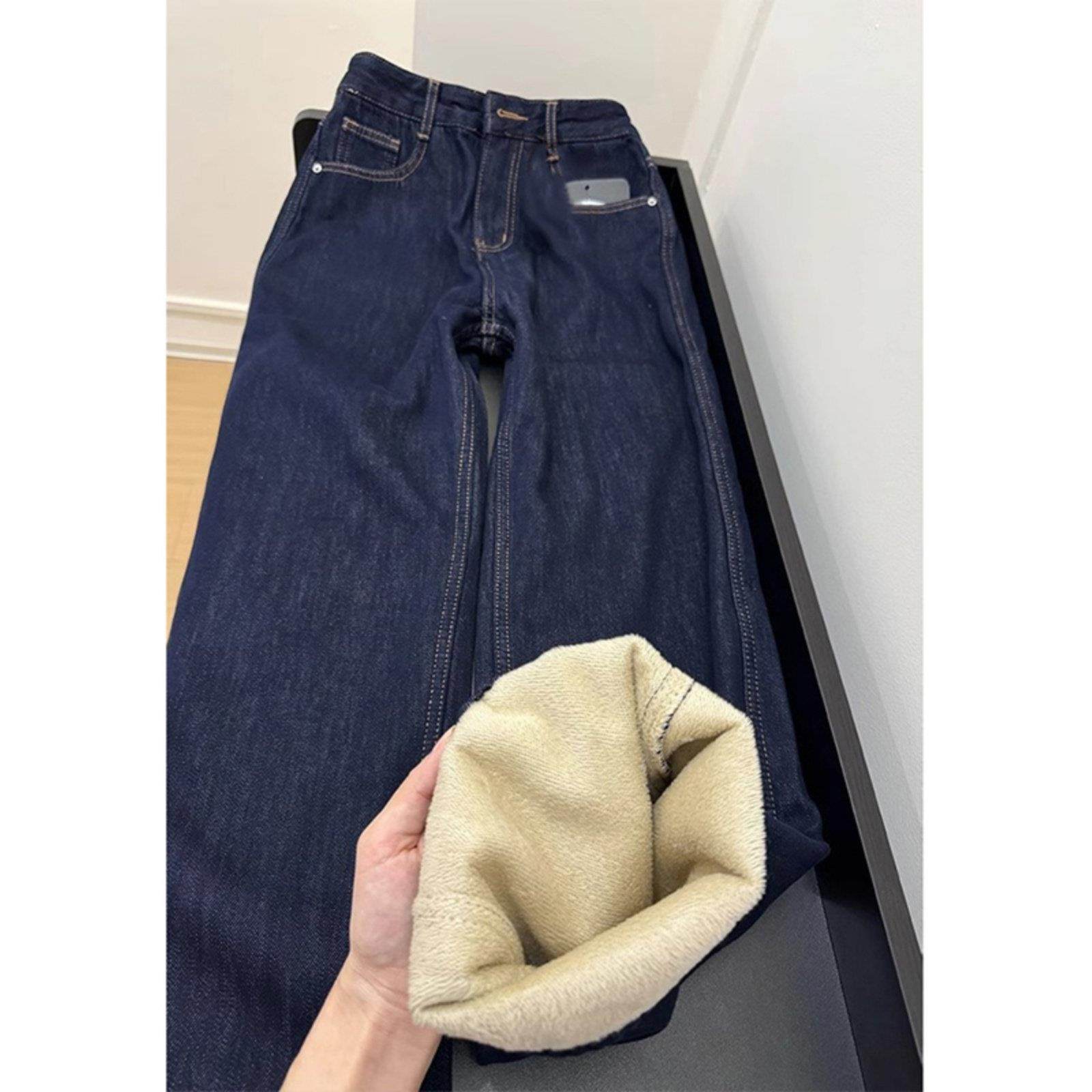 加厚深蓝色牛仔裤女直筒裤春秋保暖高个子加长裤子早秋新款阔腿裤
