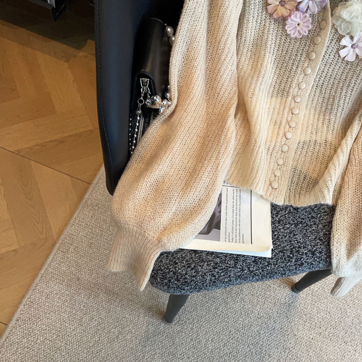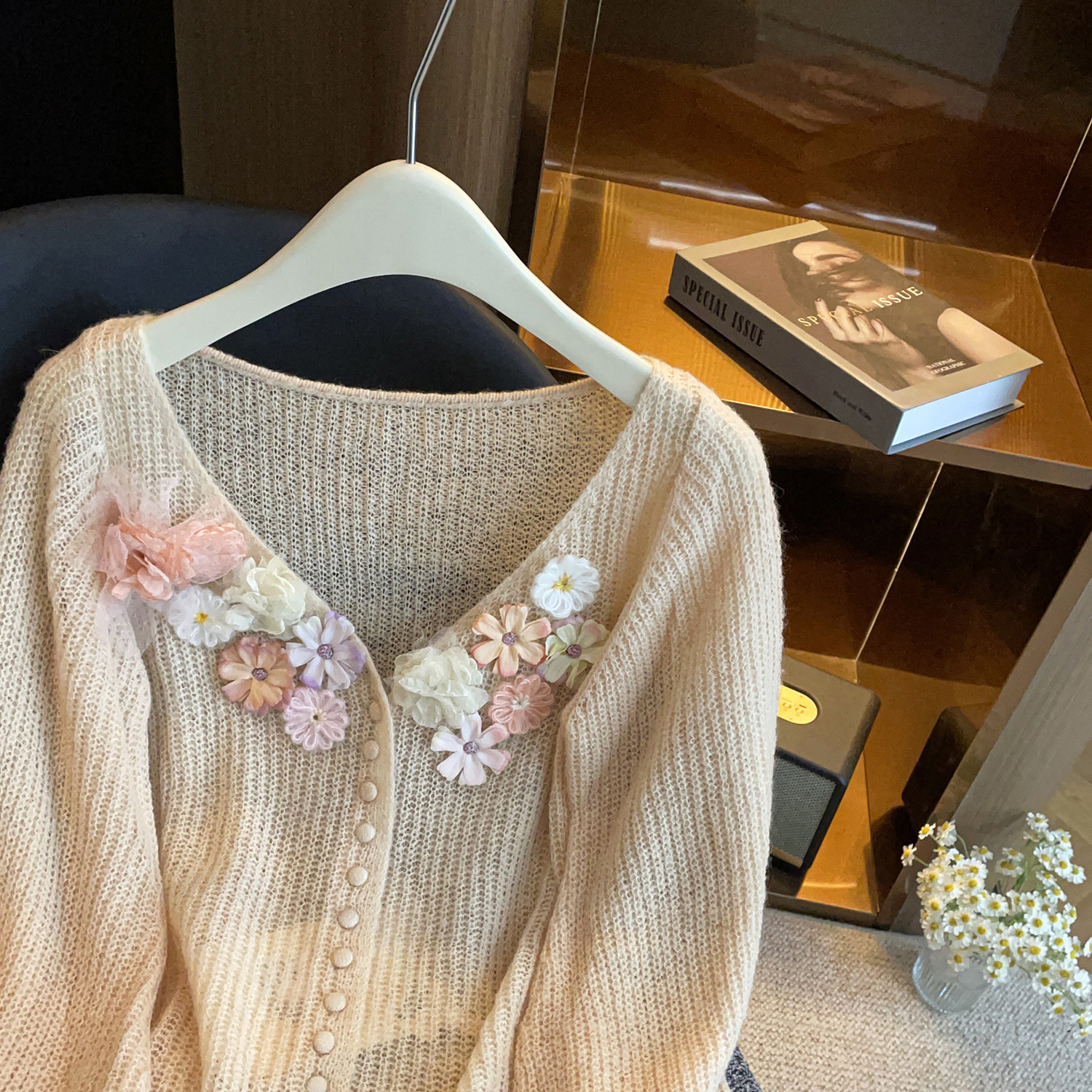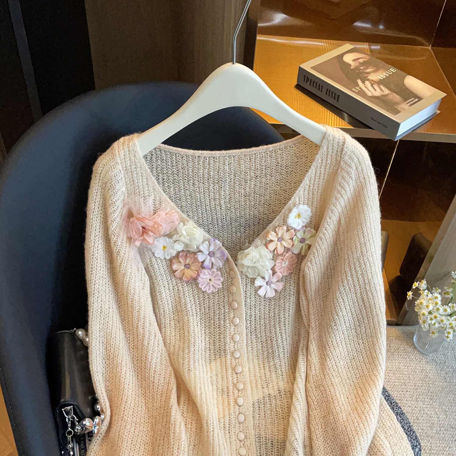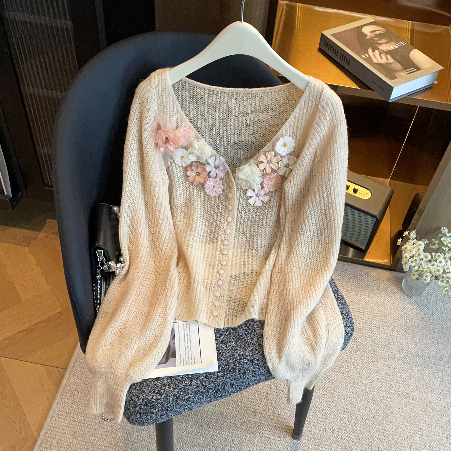 深圳南油高端女装2026春季新款温柔风立体花朵软糯百搭针织开衫女