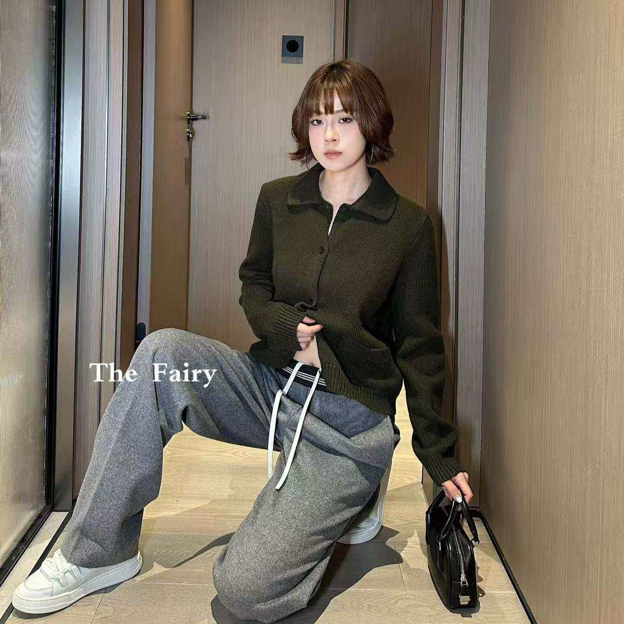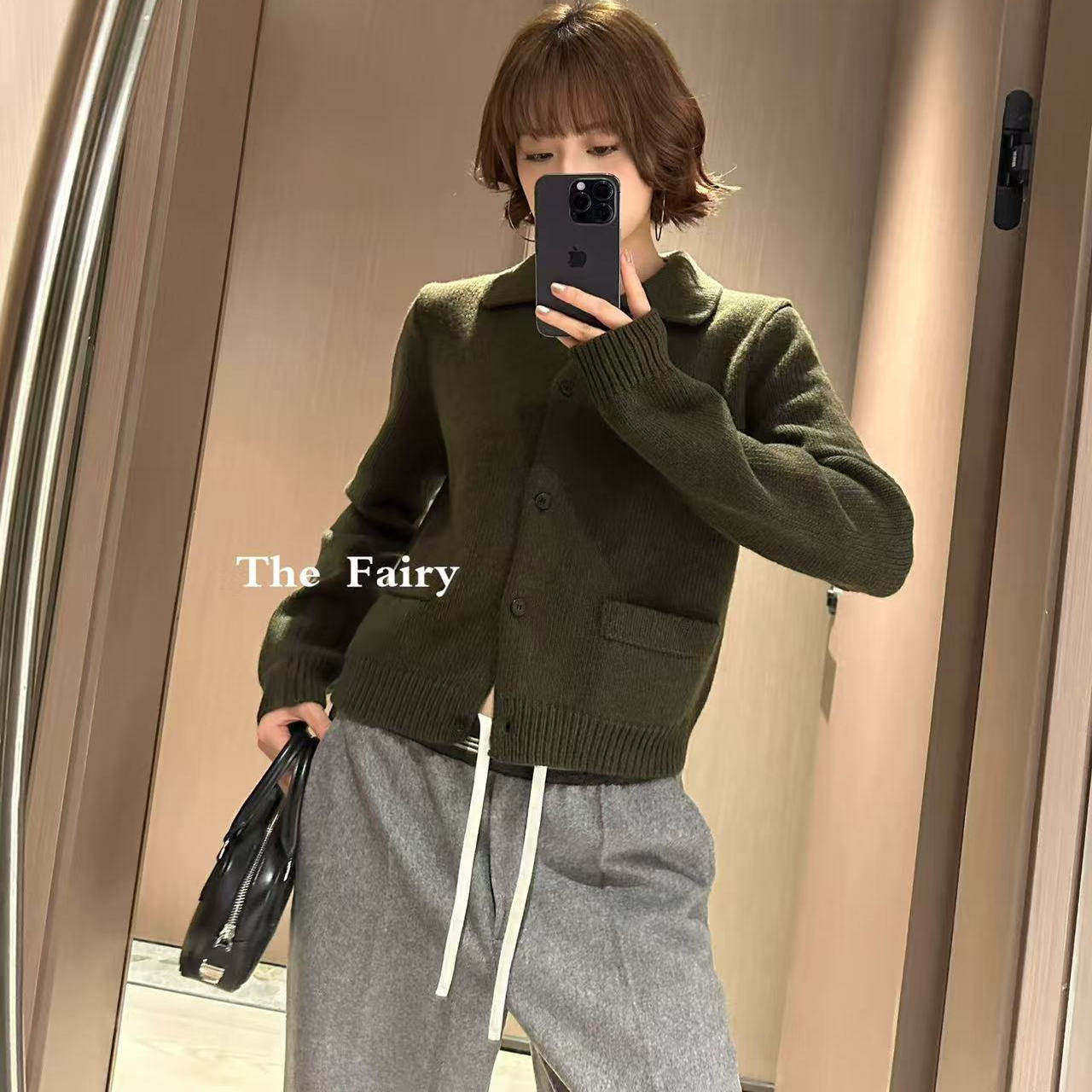 好漂亮好漂亮绿色针织开衫外套女2025年冬季新款短上衣宽松休闲潮