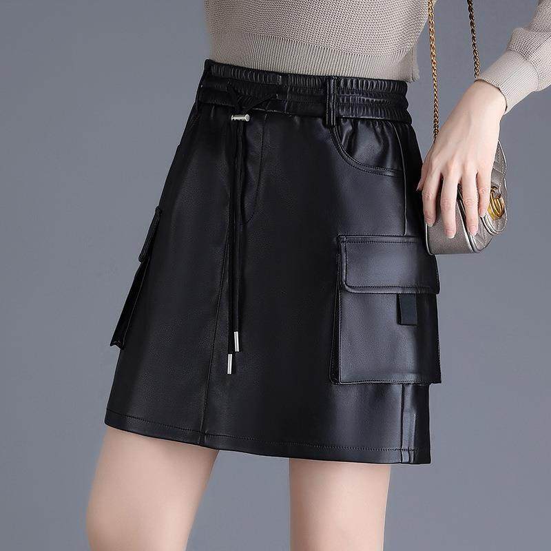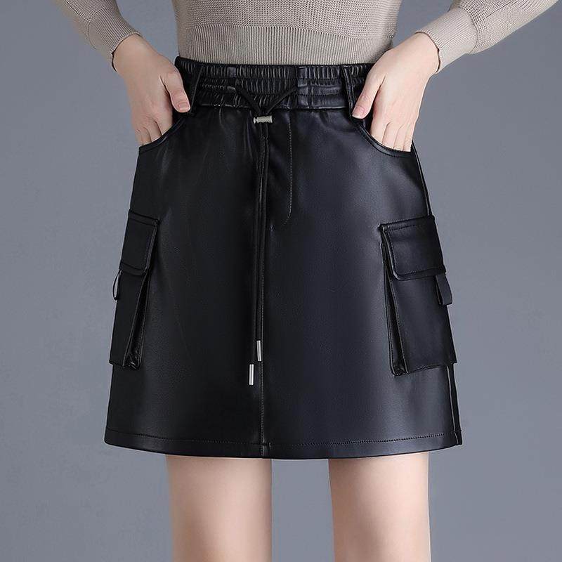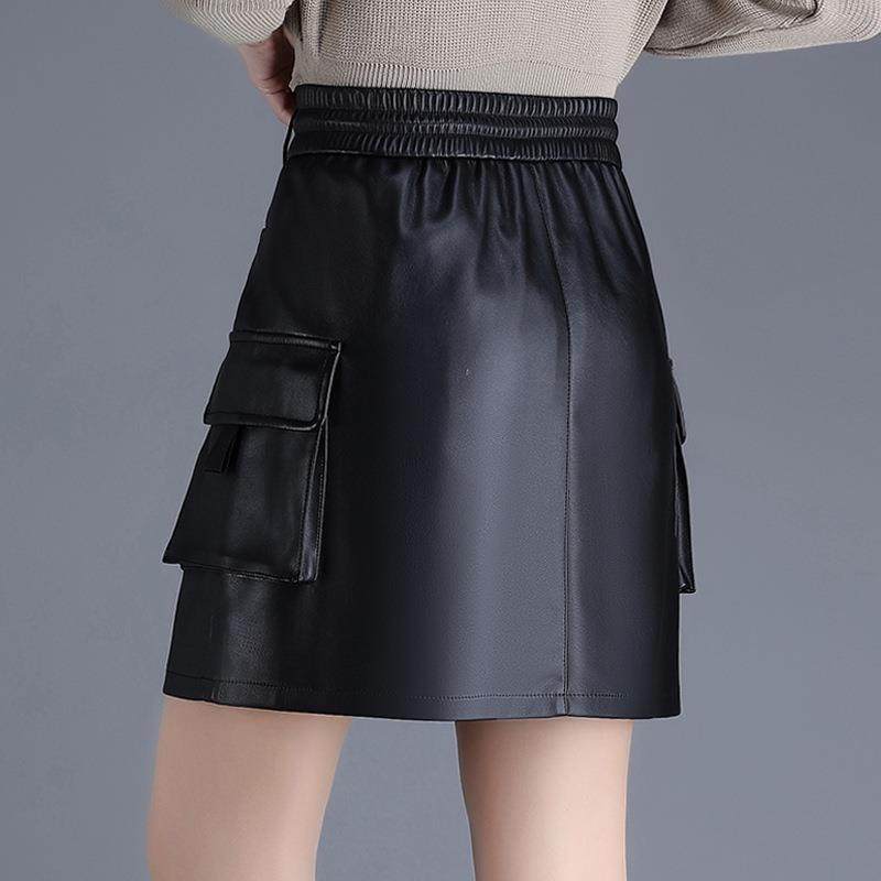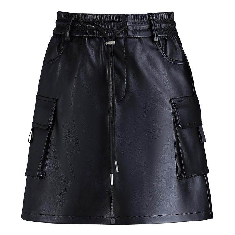 半身皮裙高腰秋冬包臀裙女2024时尚气质简约口袋显瘦一步裙短裙