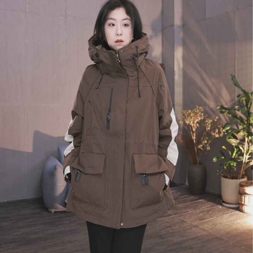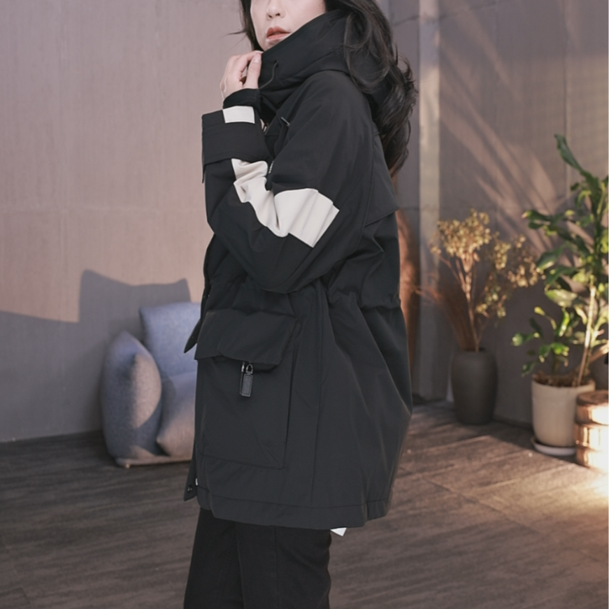 东倪MF 撞色拼接连帽冲锋衣外套女羽绒服百搭保暖90鸭绒 86A88027