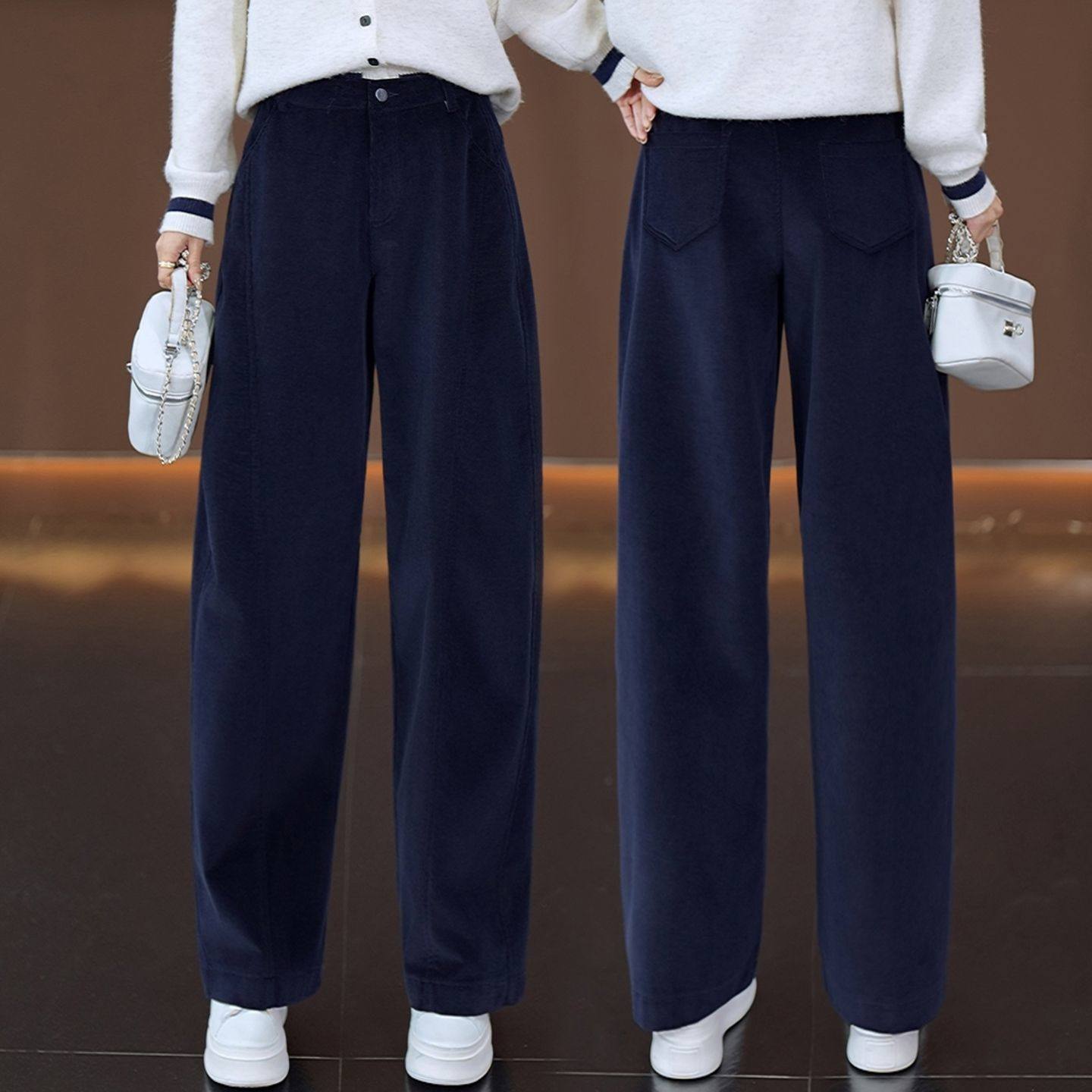 时尚窄版阔腿弯刀裤女2026新款春秋宽松显瘦遮肉直筒香蕉休闲裤子