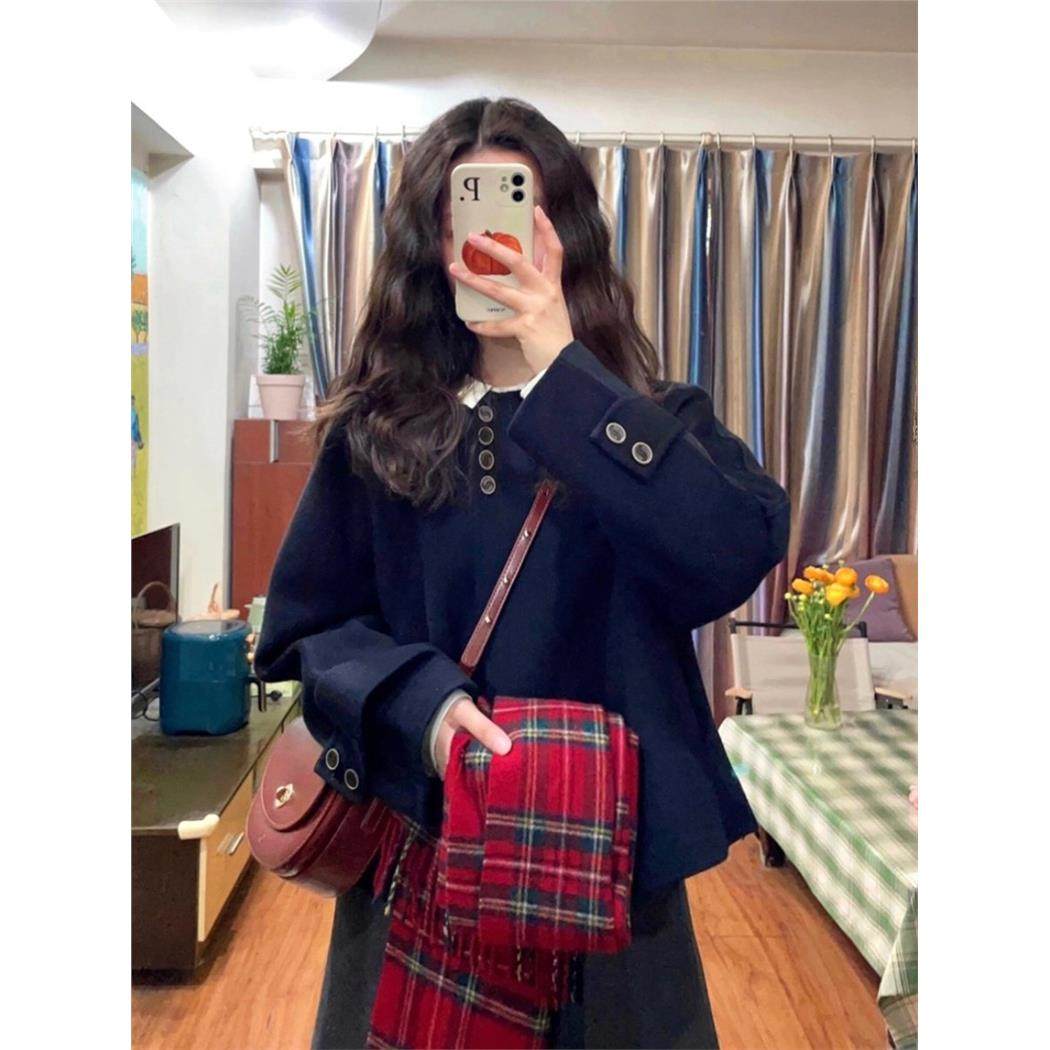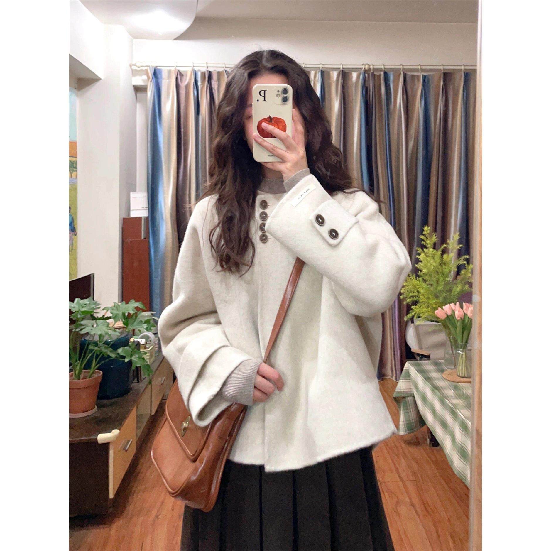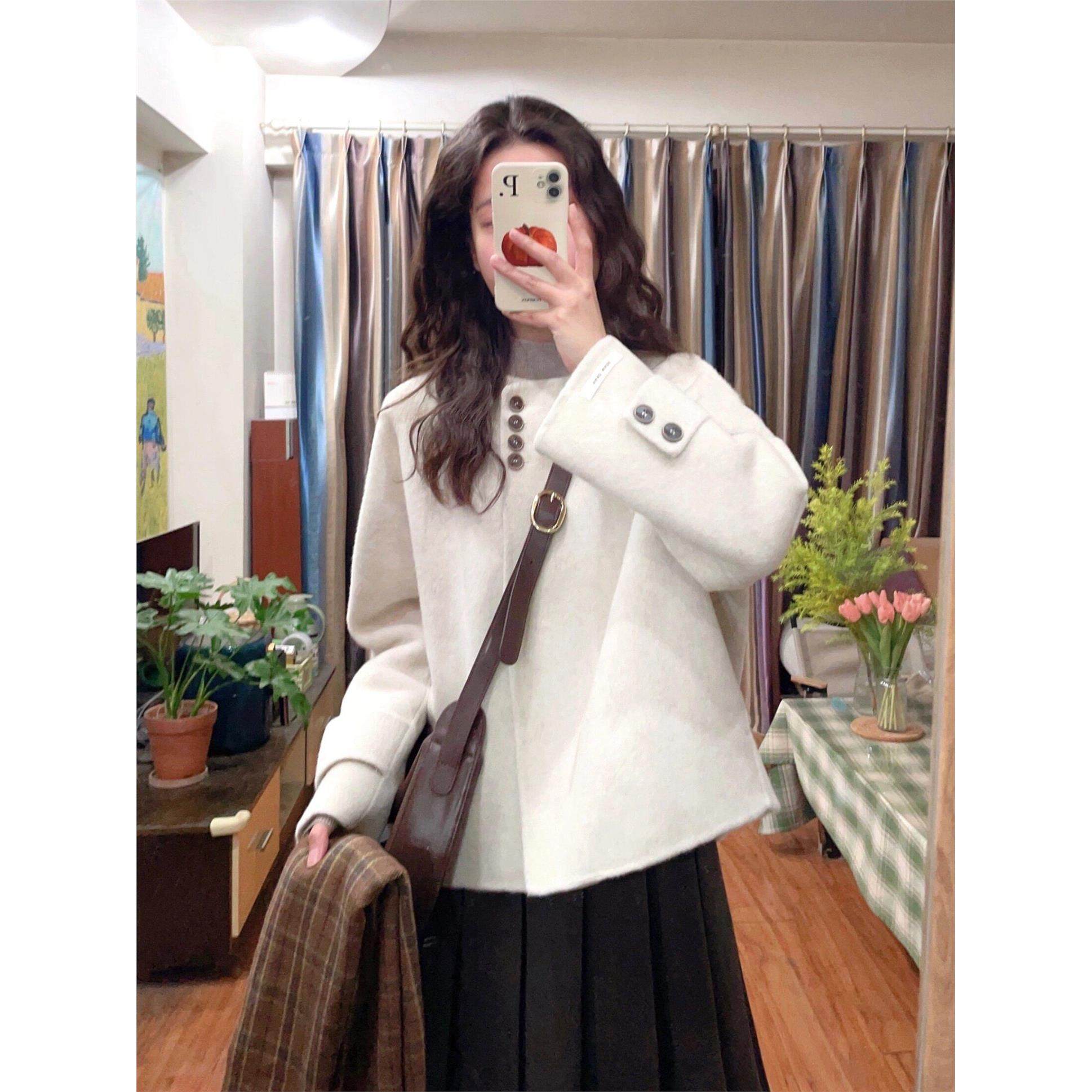 短款呢子大衣女2025新款秋冬季毛呢外套圆领高级感小个子今年流行