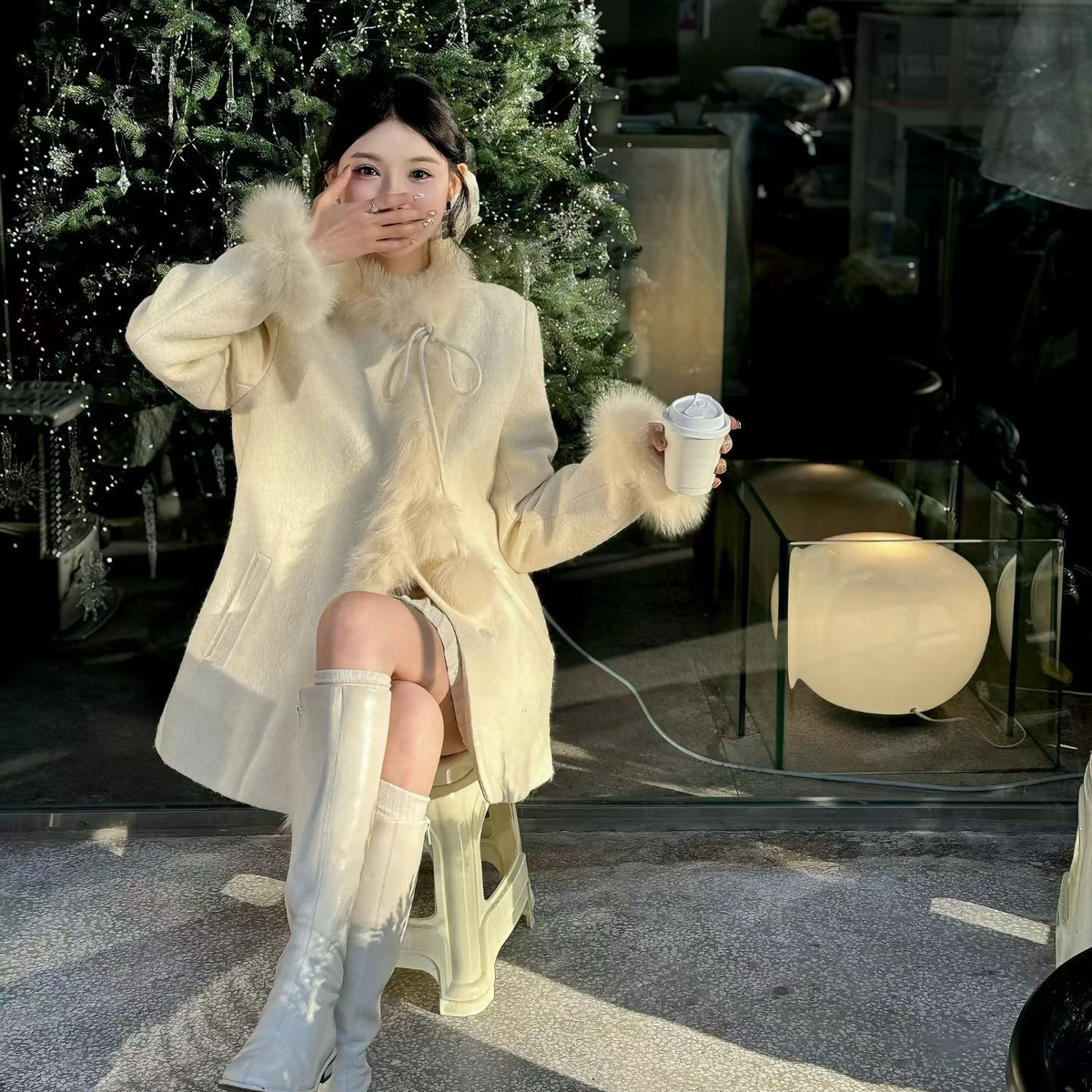 韩版千金风大衣加厚保暖羽绒服外套(配可拆卸真狐狸毛袖)