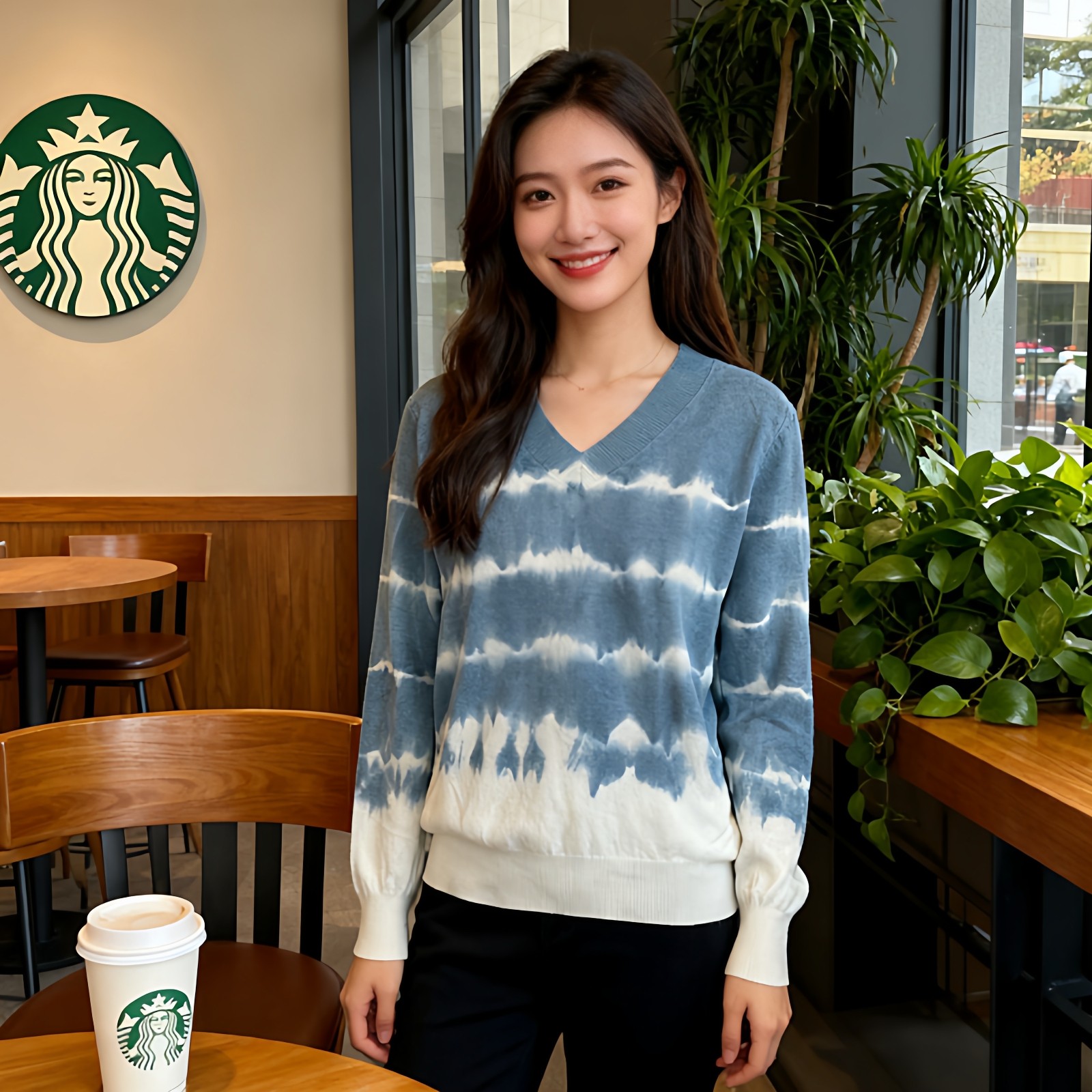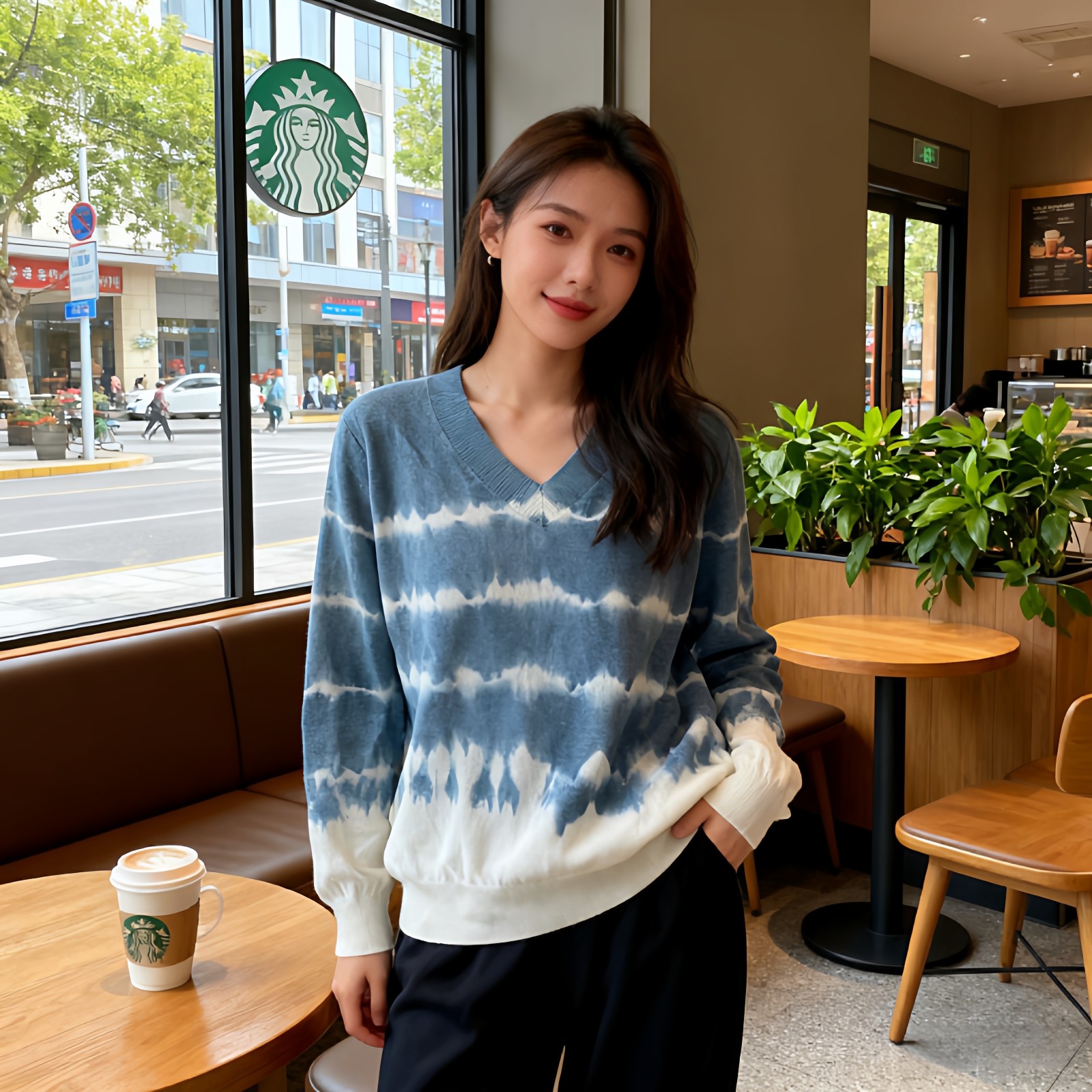 首页> 女装> 扎染复古毛衣女2026春秋新款宽松V领针织衫长袖上衣休闲百搭毛衣