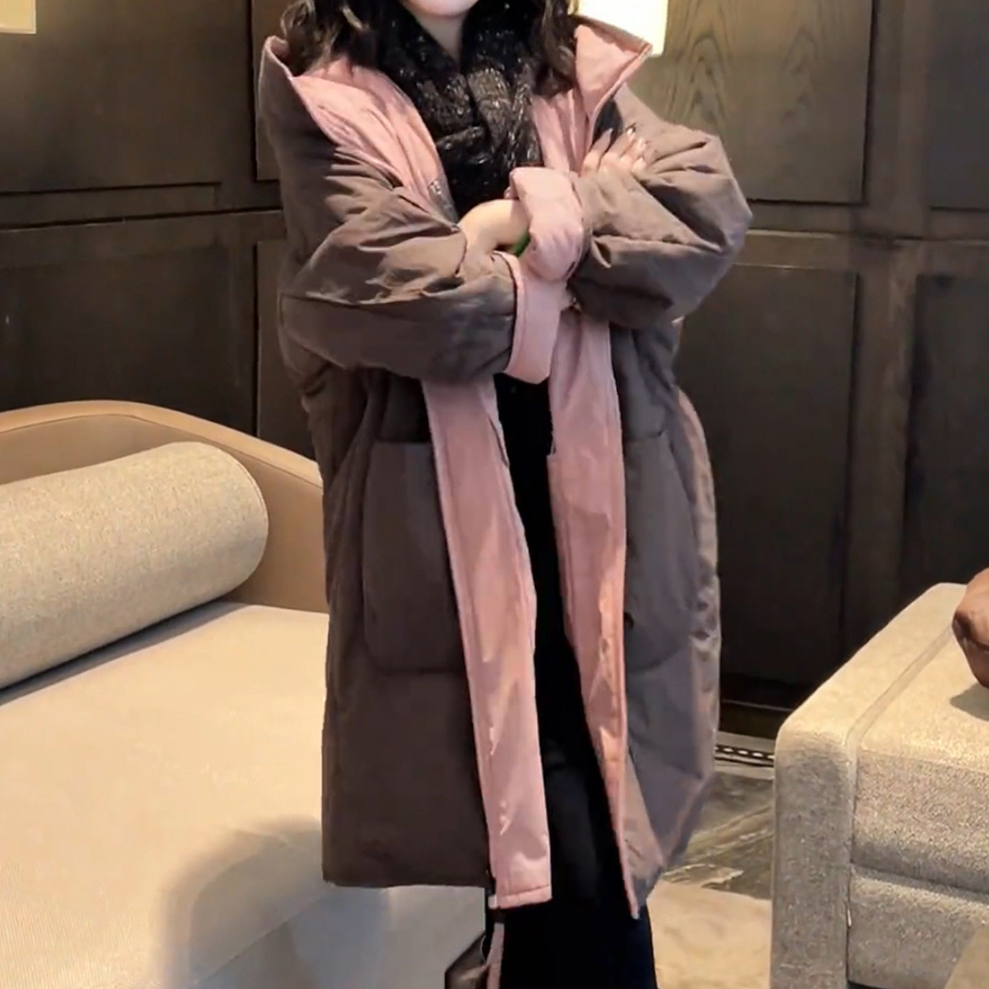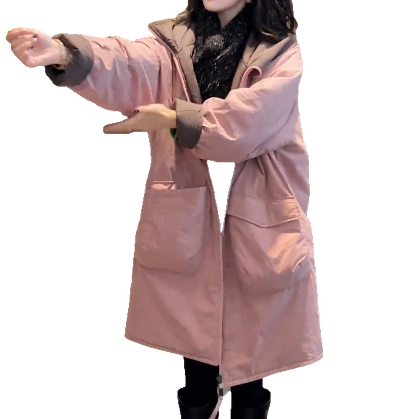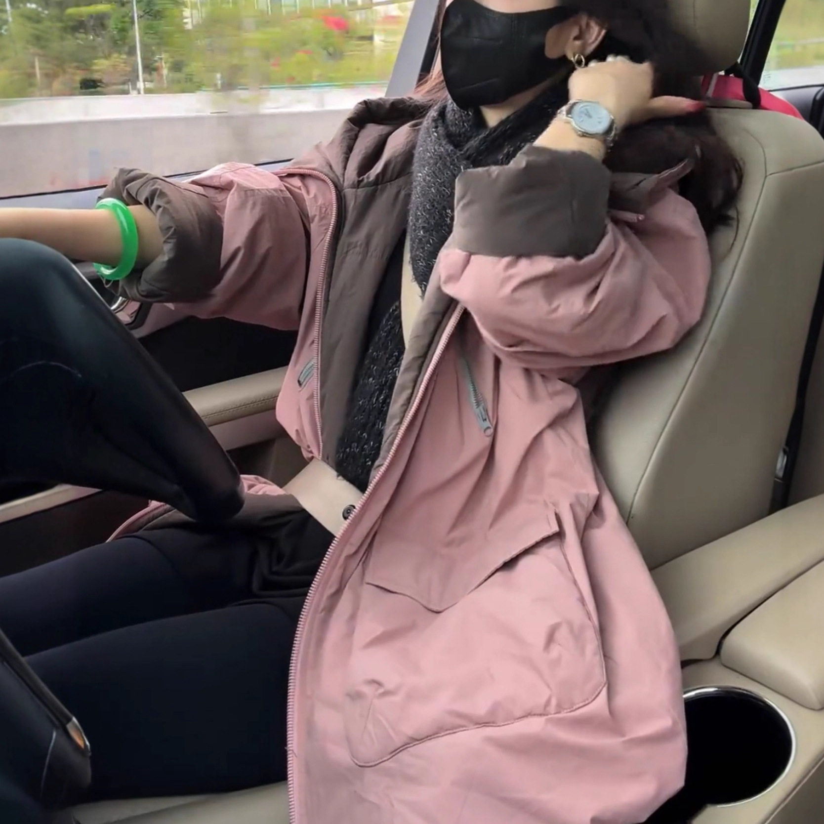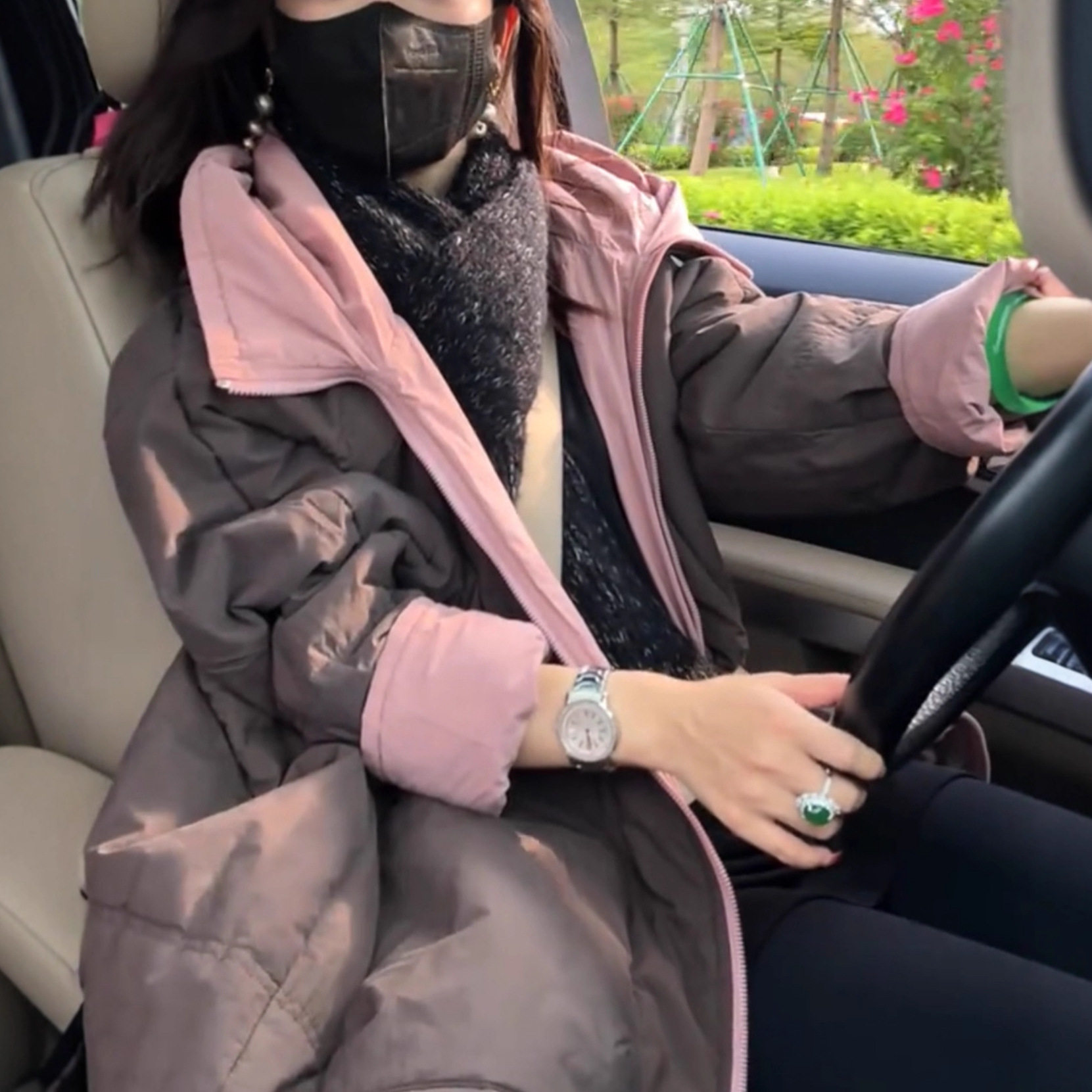 高级感双面穿连帽棉服女款冬季派克服休闲宽松中长款棉衣夹棉外套