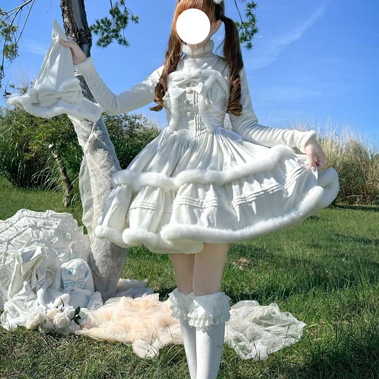首页> 女装> 冬季新款日系lolita优雅大小姐重工斗篷披肩+内搭+背带裙三件套女