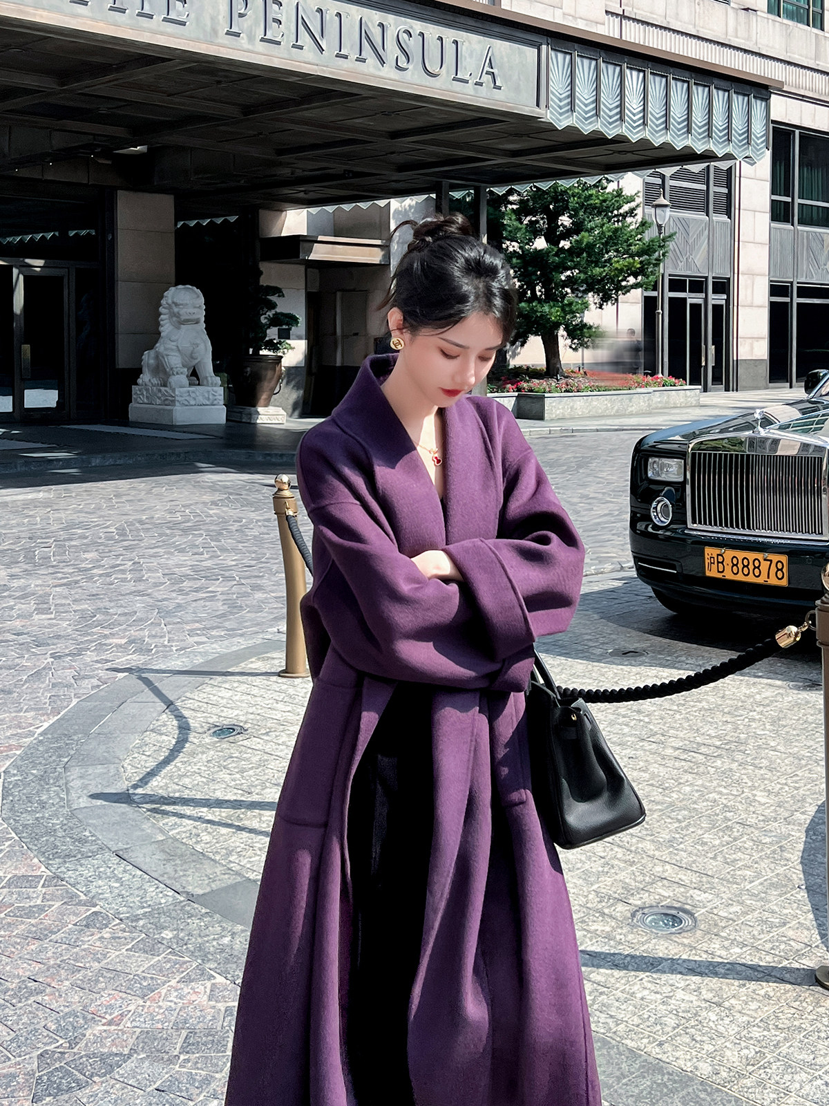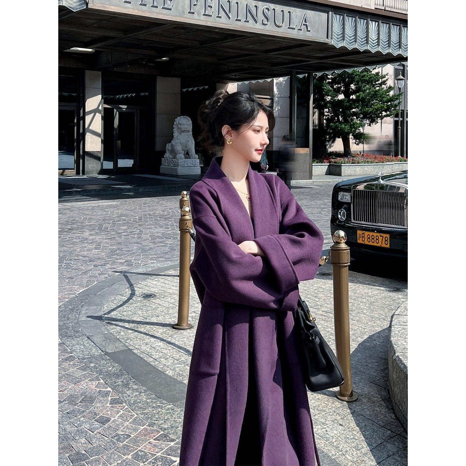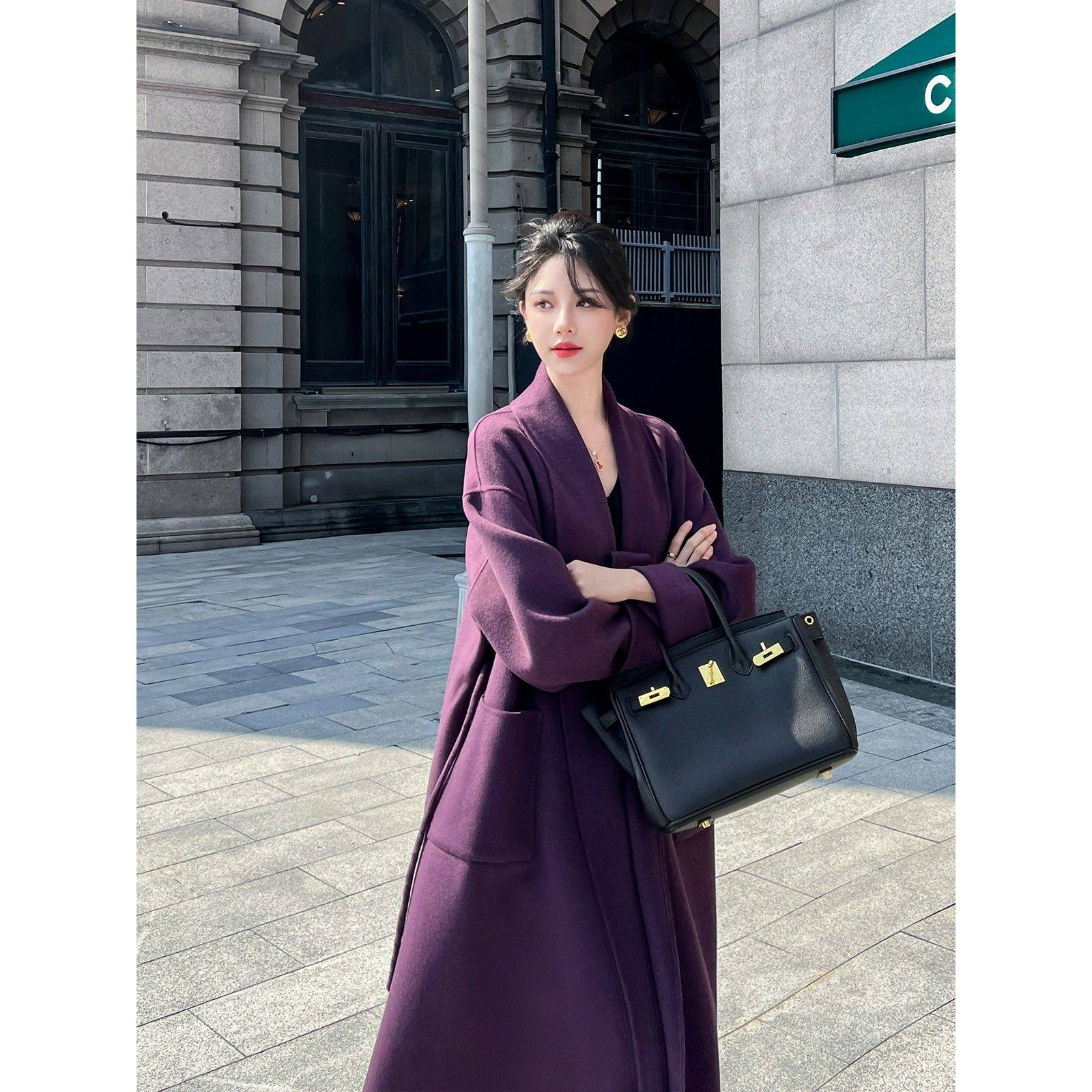 紫色双面羊绒大衣女长款2025秋冬新款韩版高端气质宽松毛呢子外套