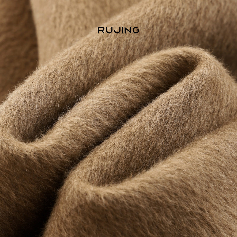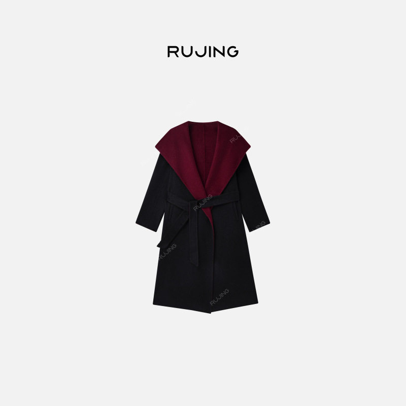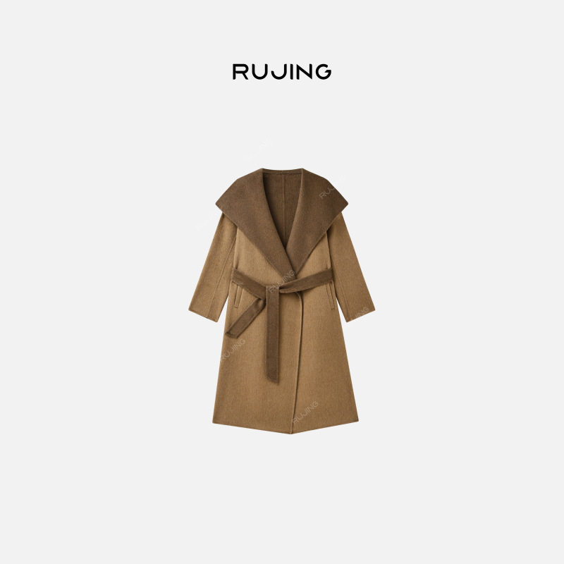 RUJING丨黑标 【大翻领驼绒大衣】重磅100%驼绒气质长款系带大衣-