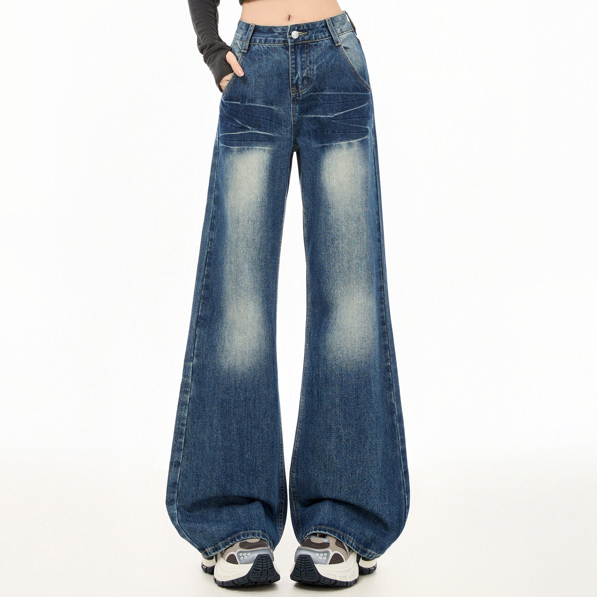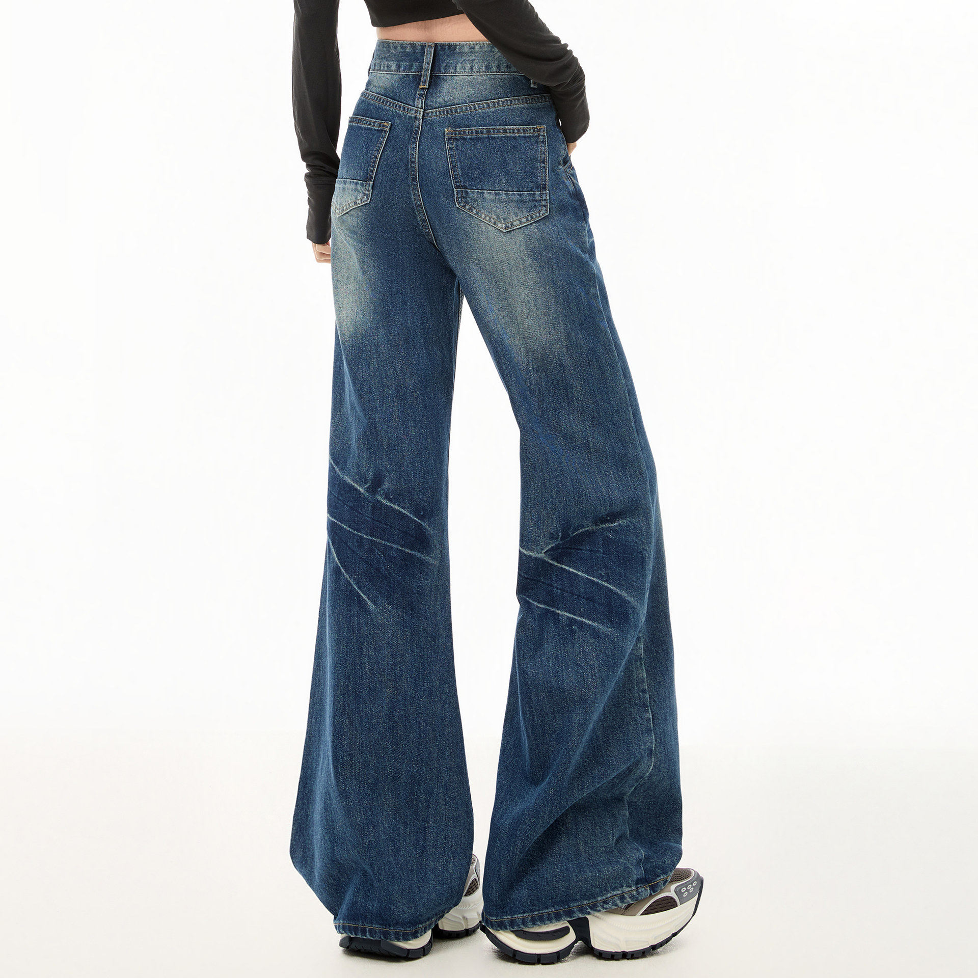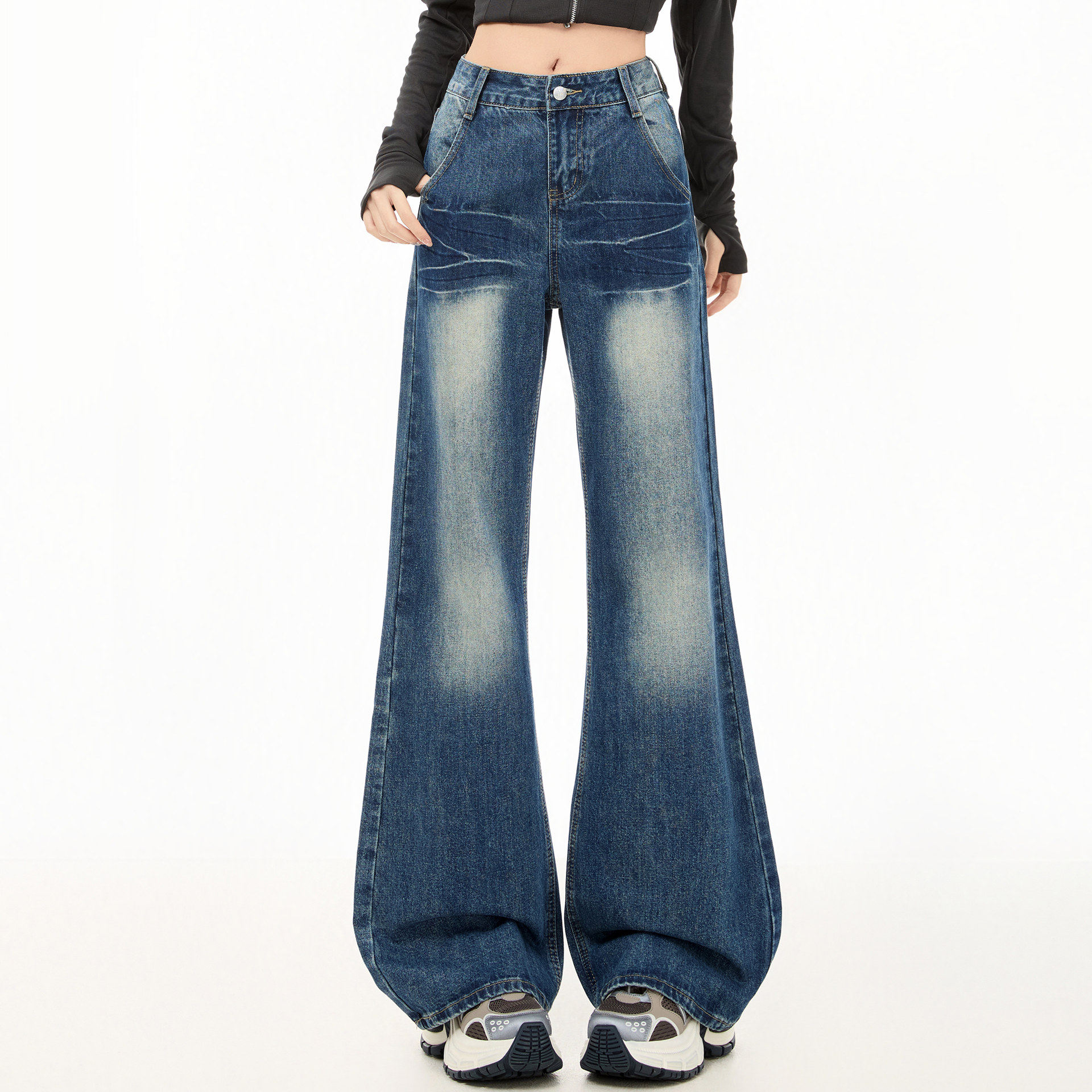 美式复古微喇牛仔裤女早春秋新款扎染设计感高腰宽松垂感阔腿长裤