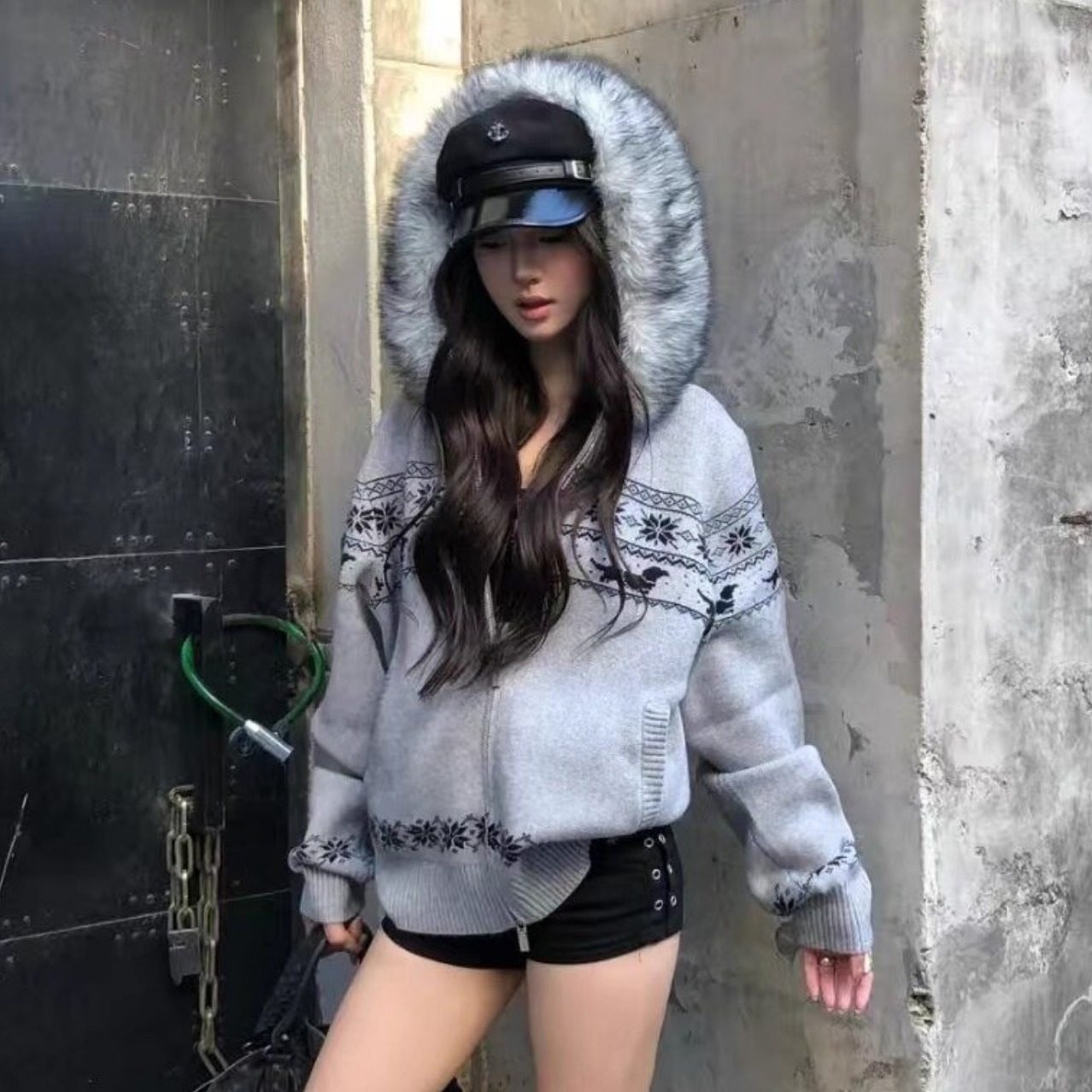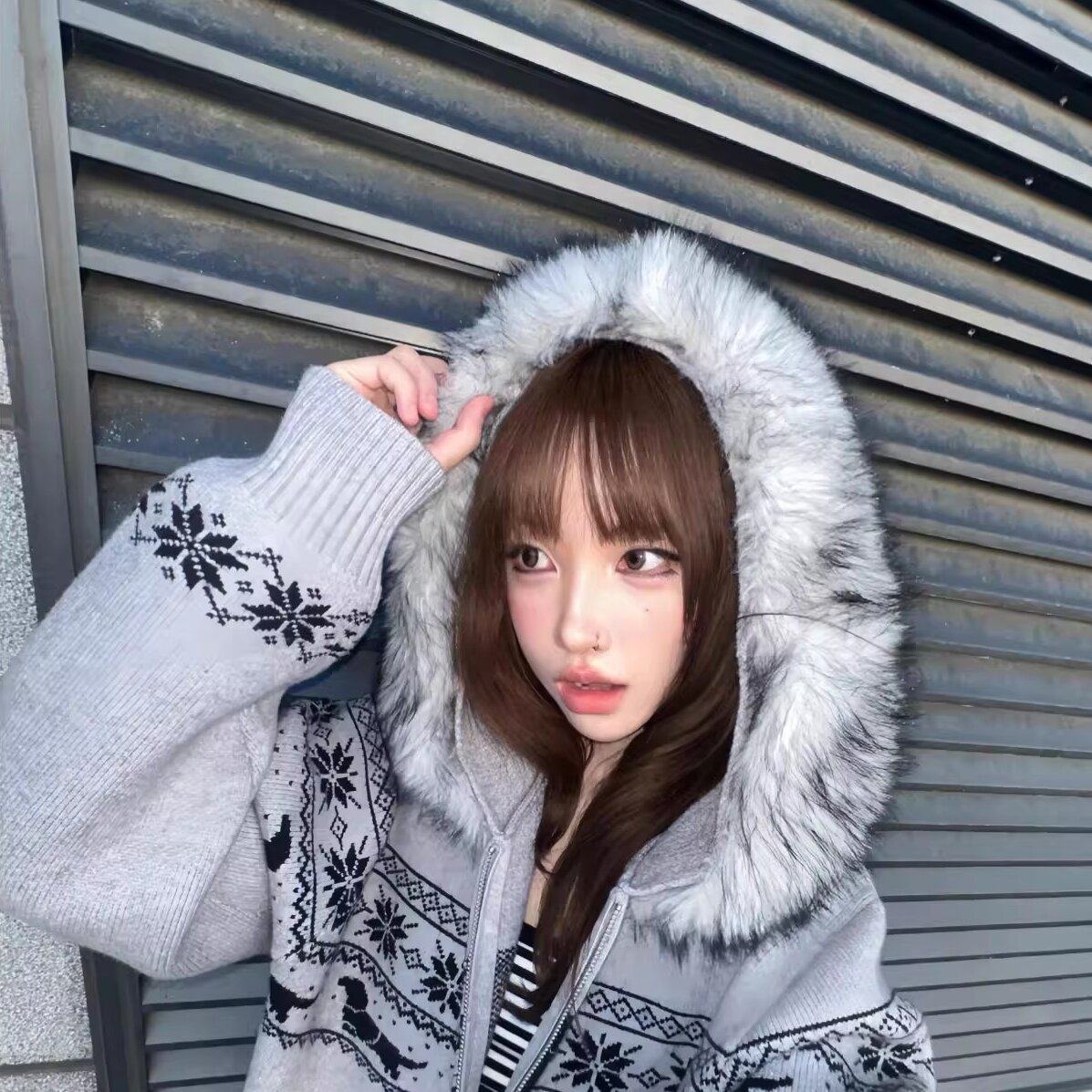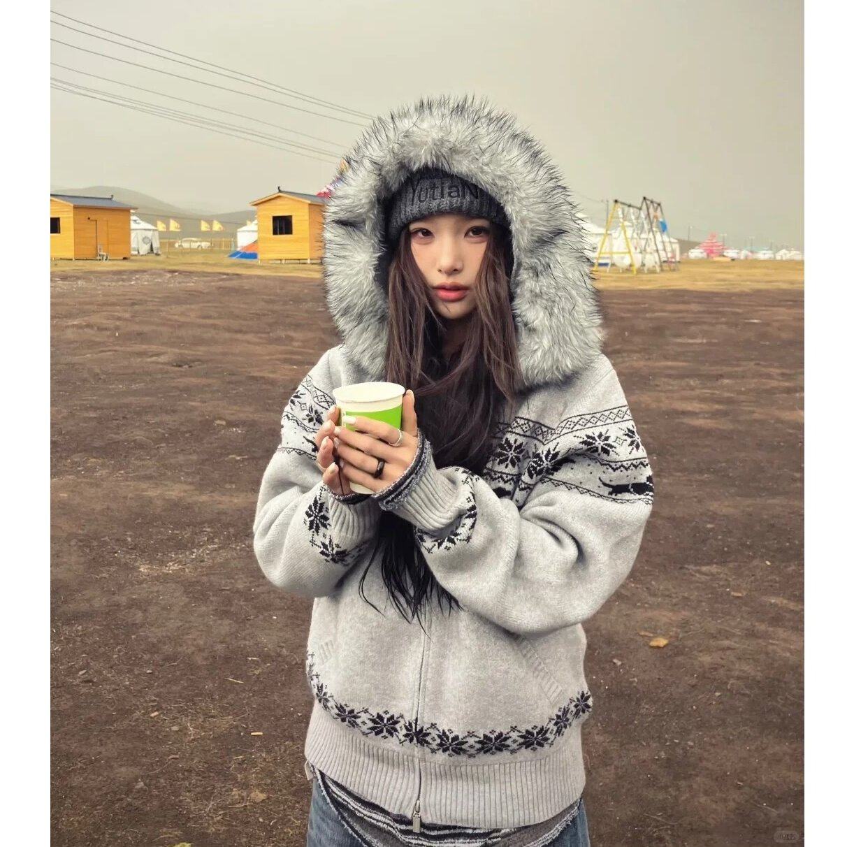 费尔岛连帽毛衣外套女韩系秋季穿搭慵懒风针织衫宽松长袖软糯上衣