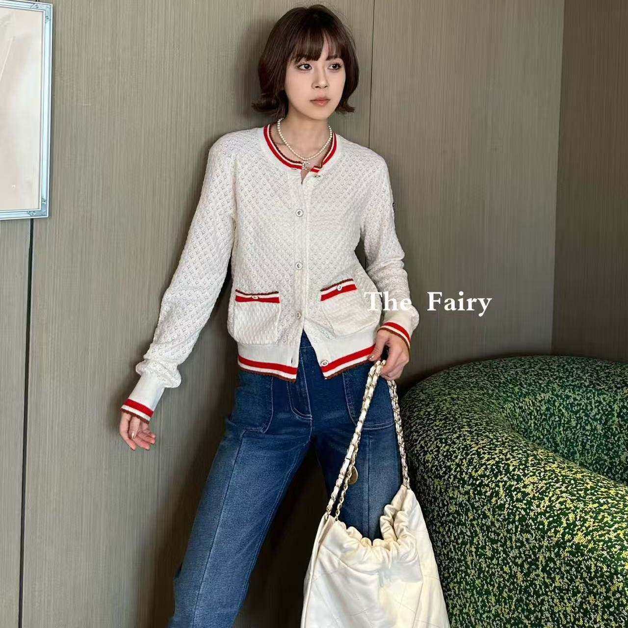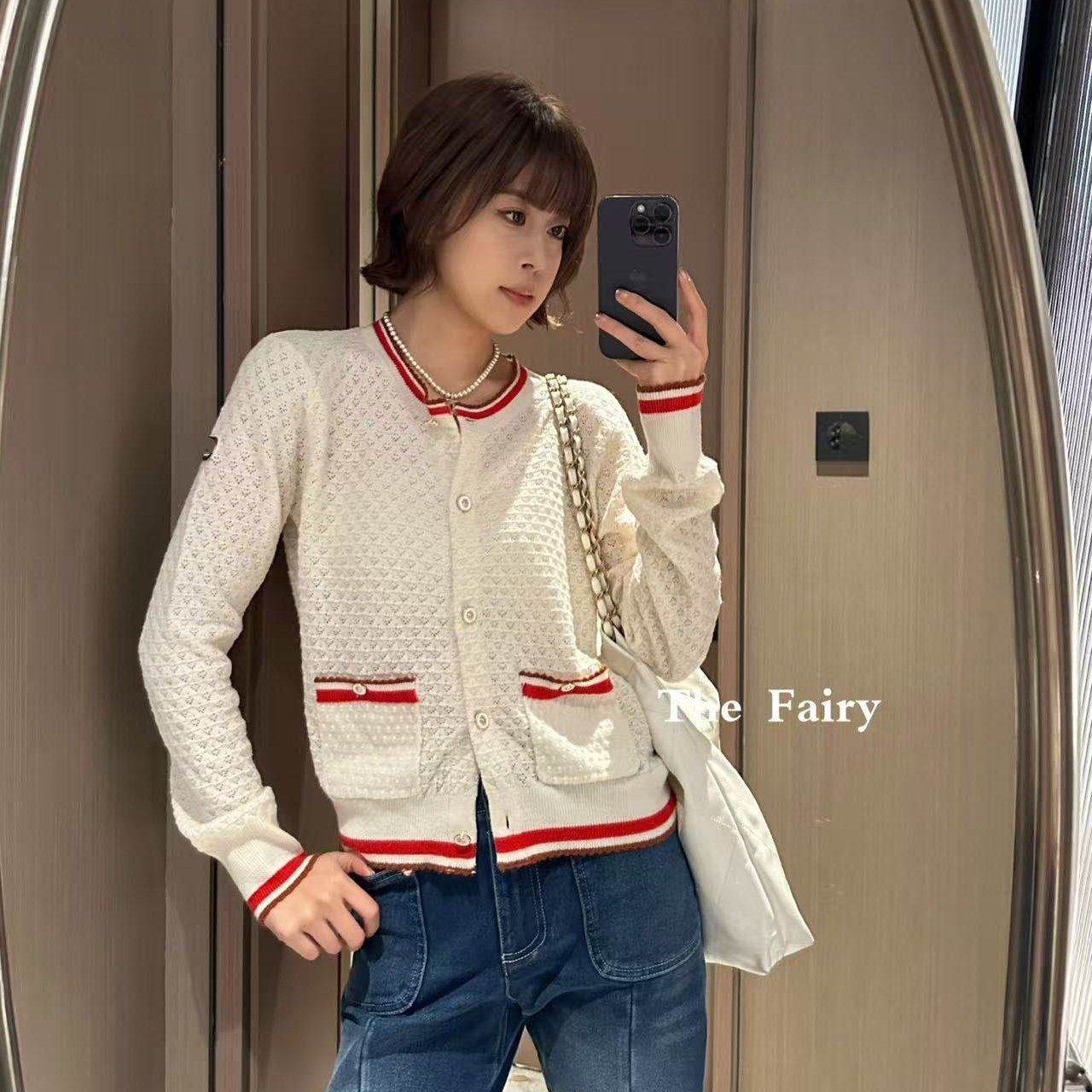 好漂亮好漂亮拼色针织开衫外套女2025年冬季新款短上衣名媛小香风