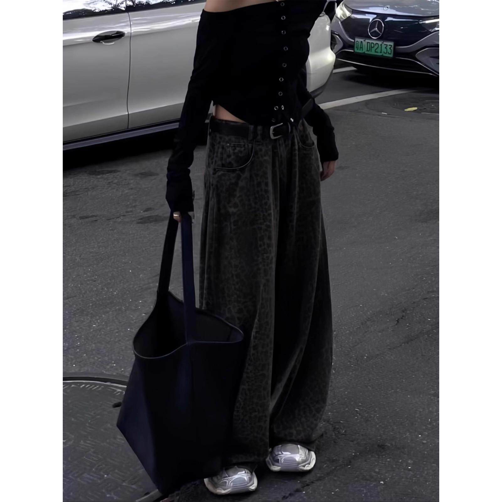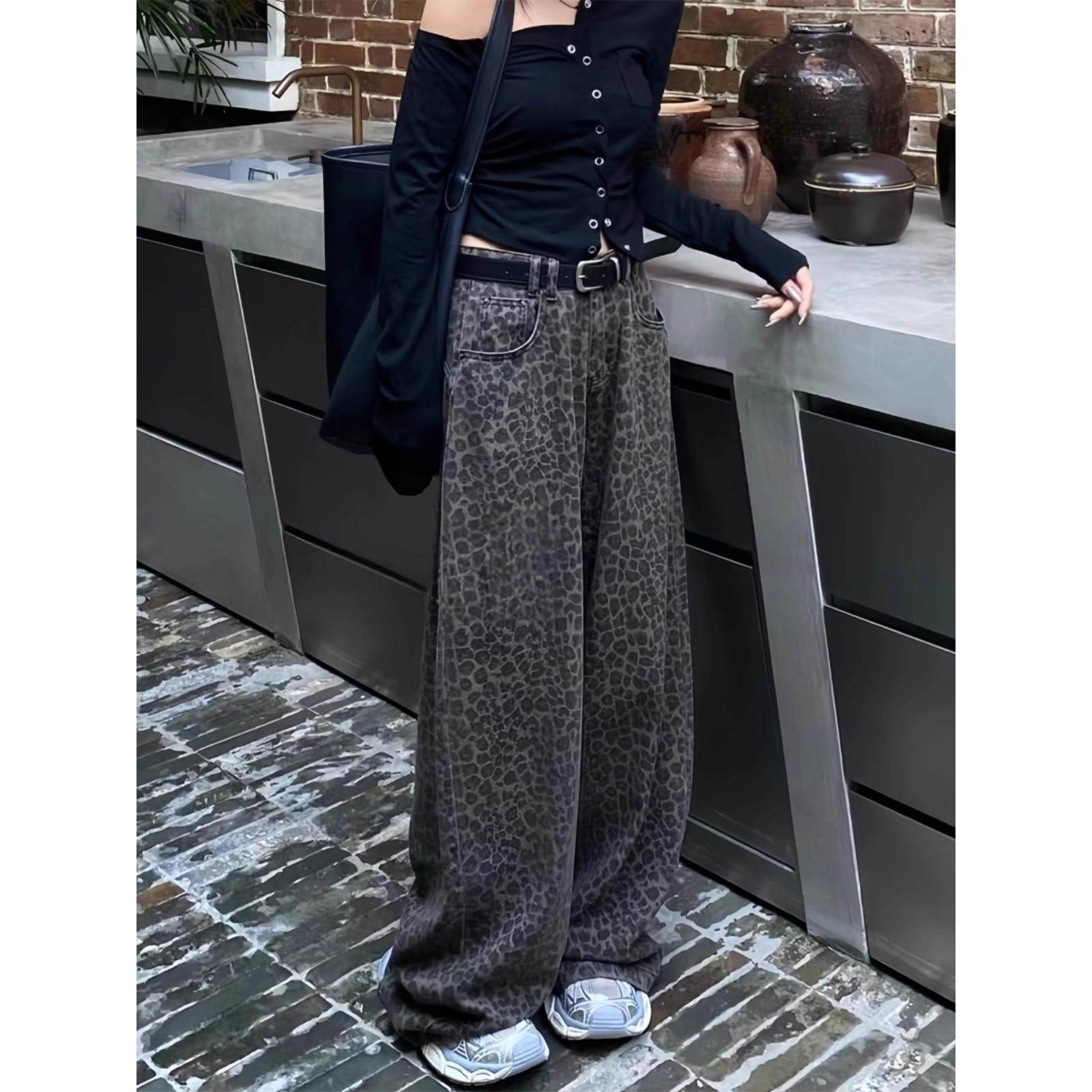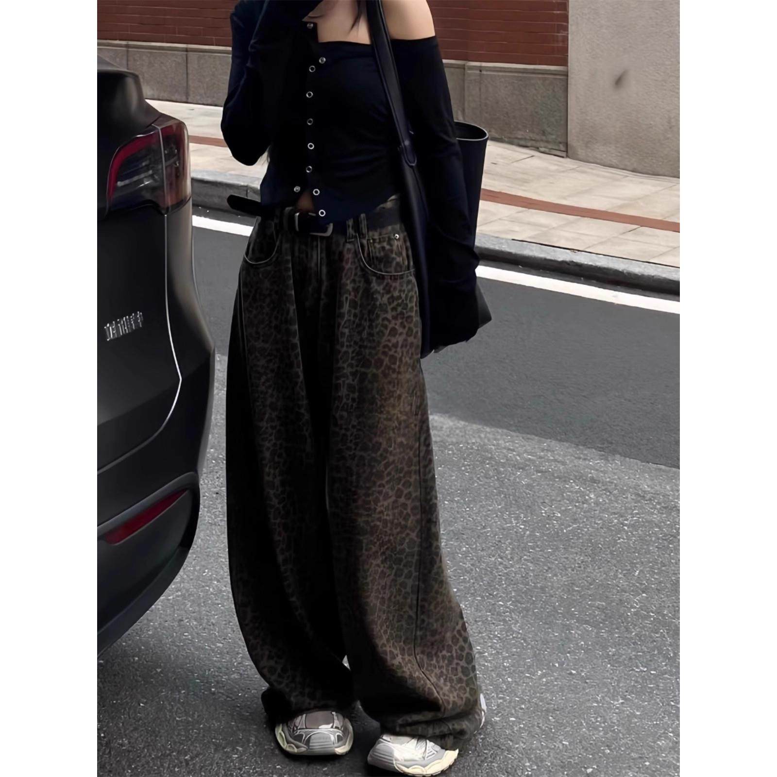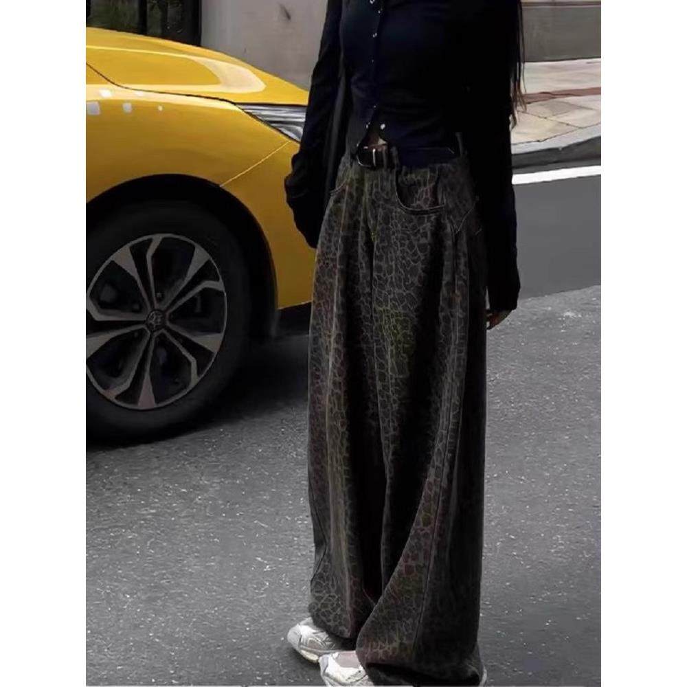 首页> 女装> 英国DGKP豹纹牛仔裤女2025春秋新款高腰显瘦百搭直筒阔腿裤高个子