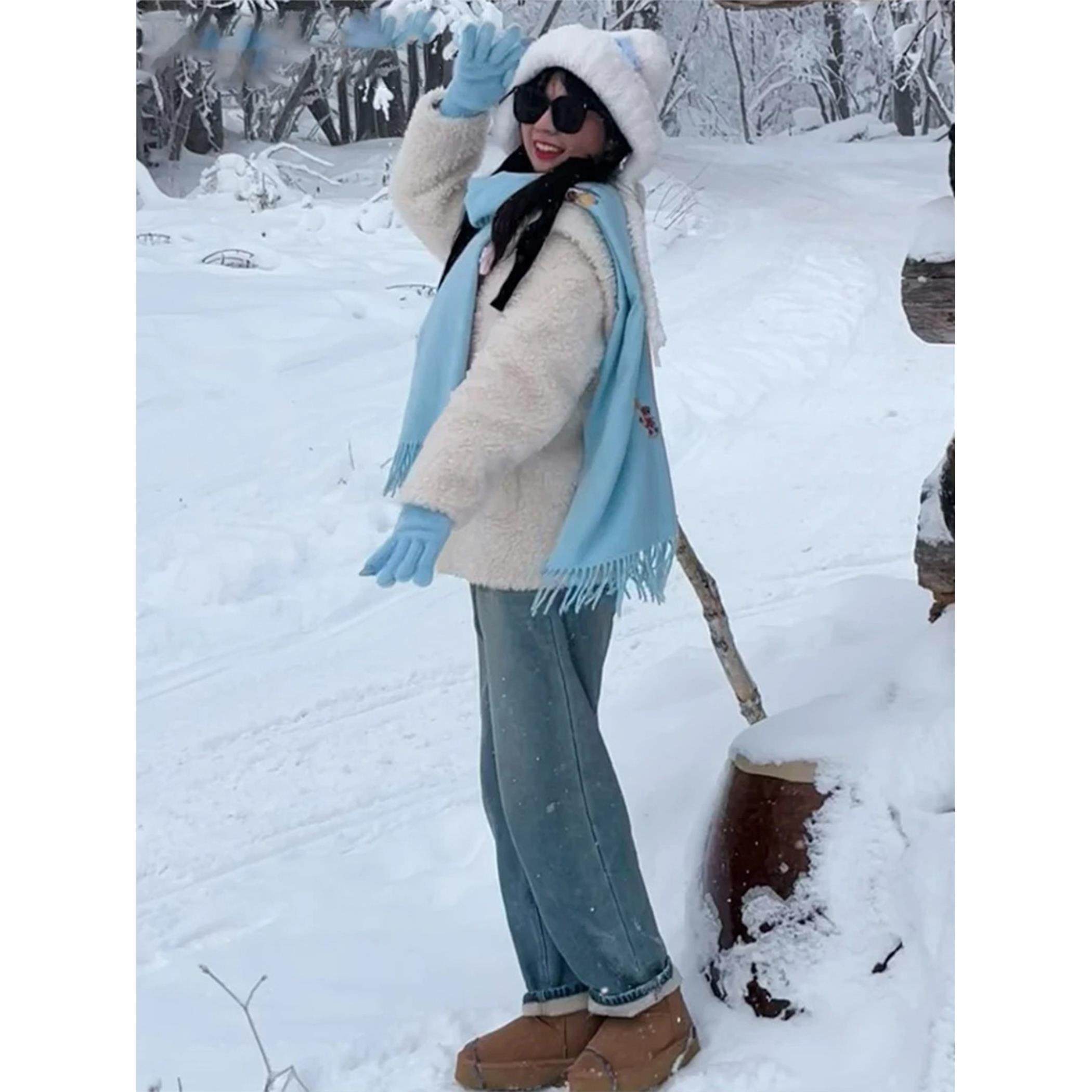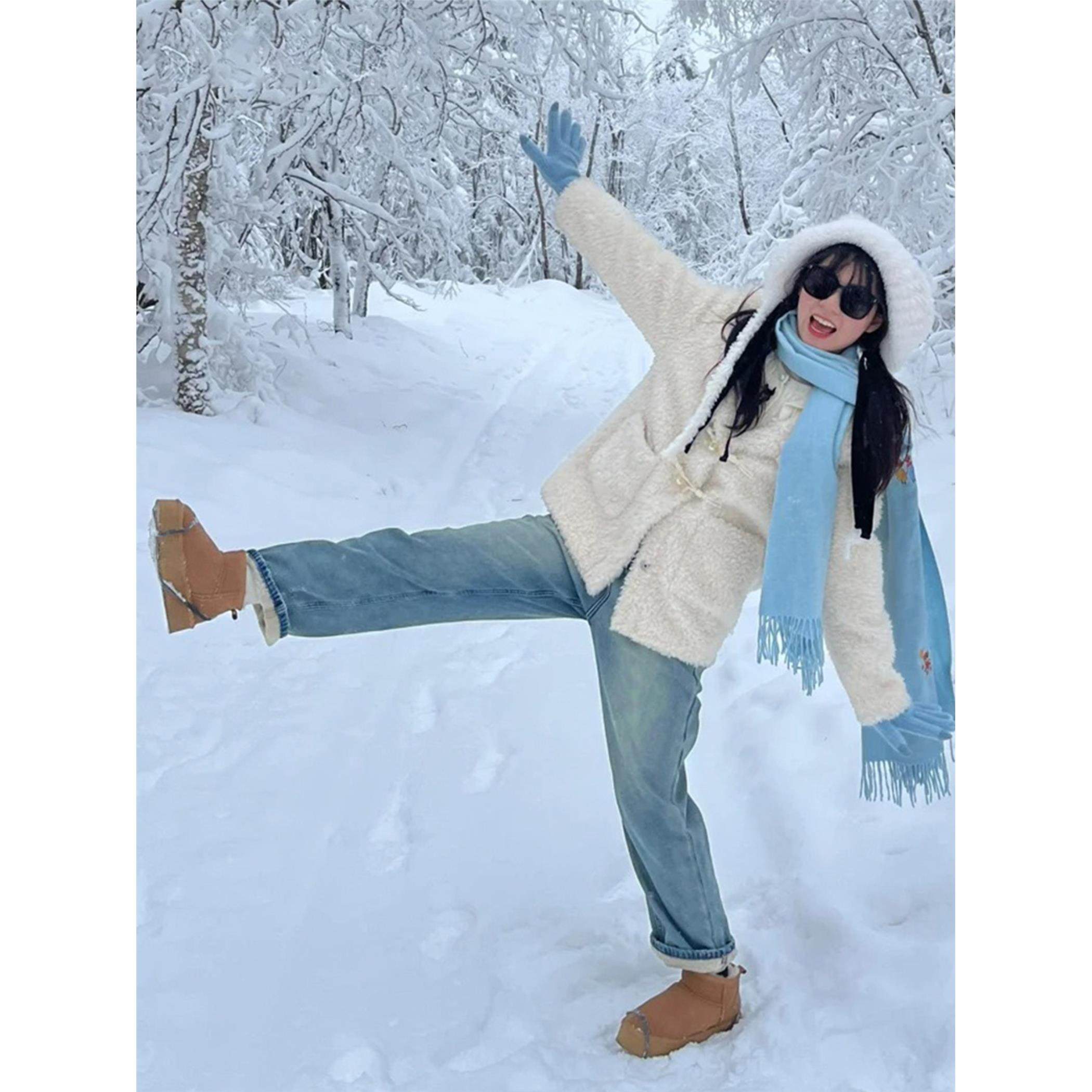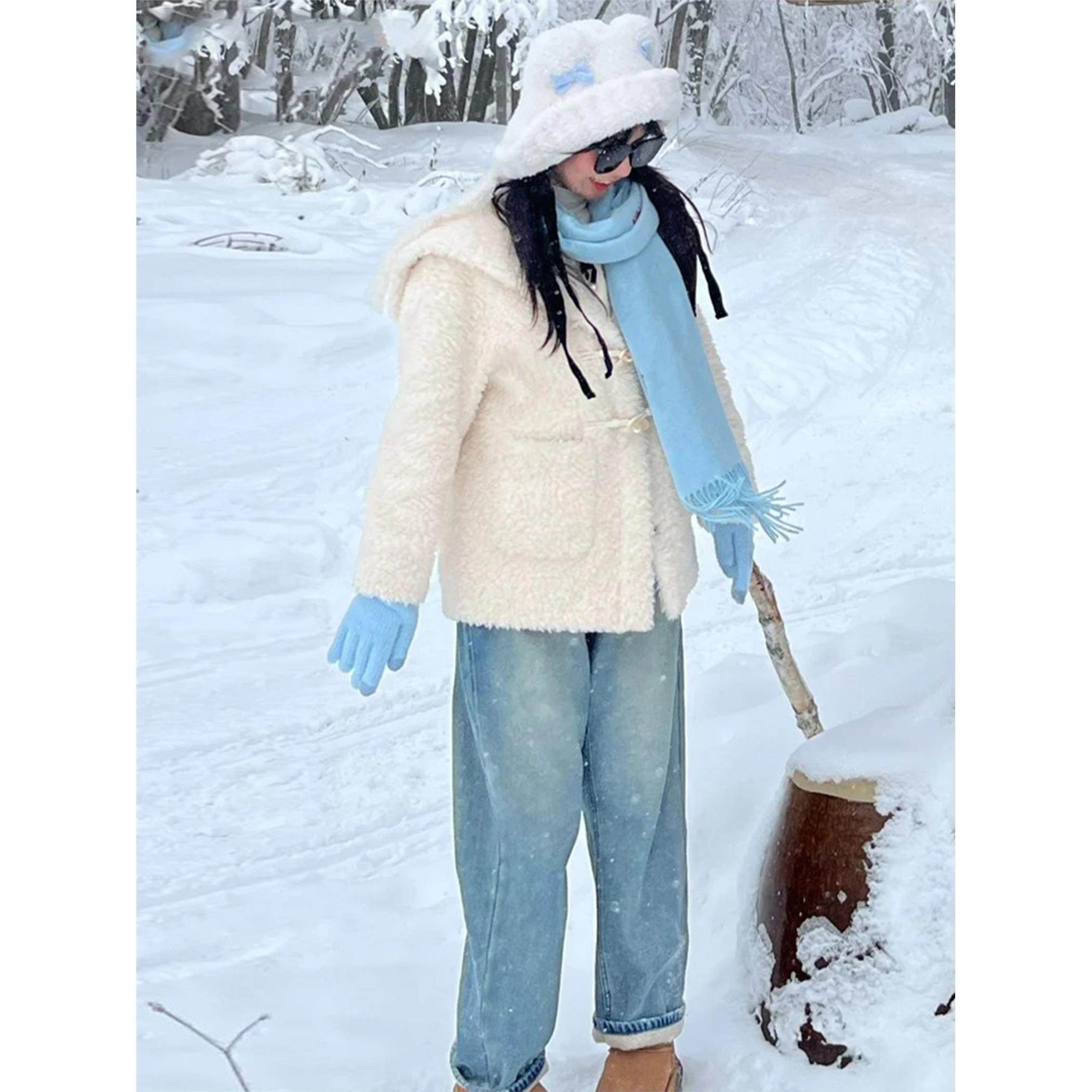 浅色直筒窄版牛仔裤女2025新款冬季小个子高腰宽松阔腿加绒裤子潮