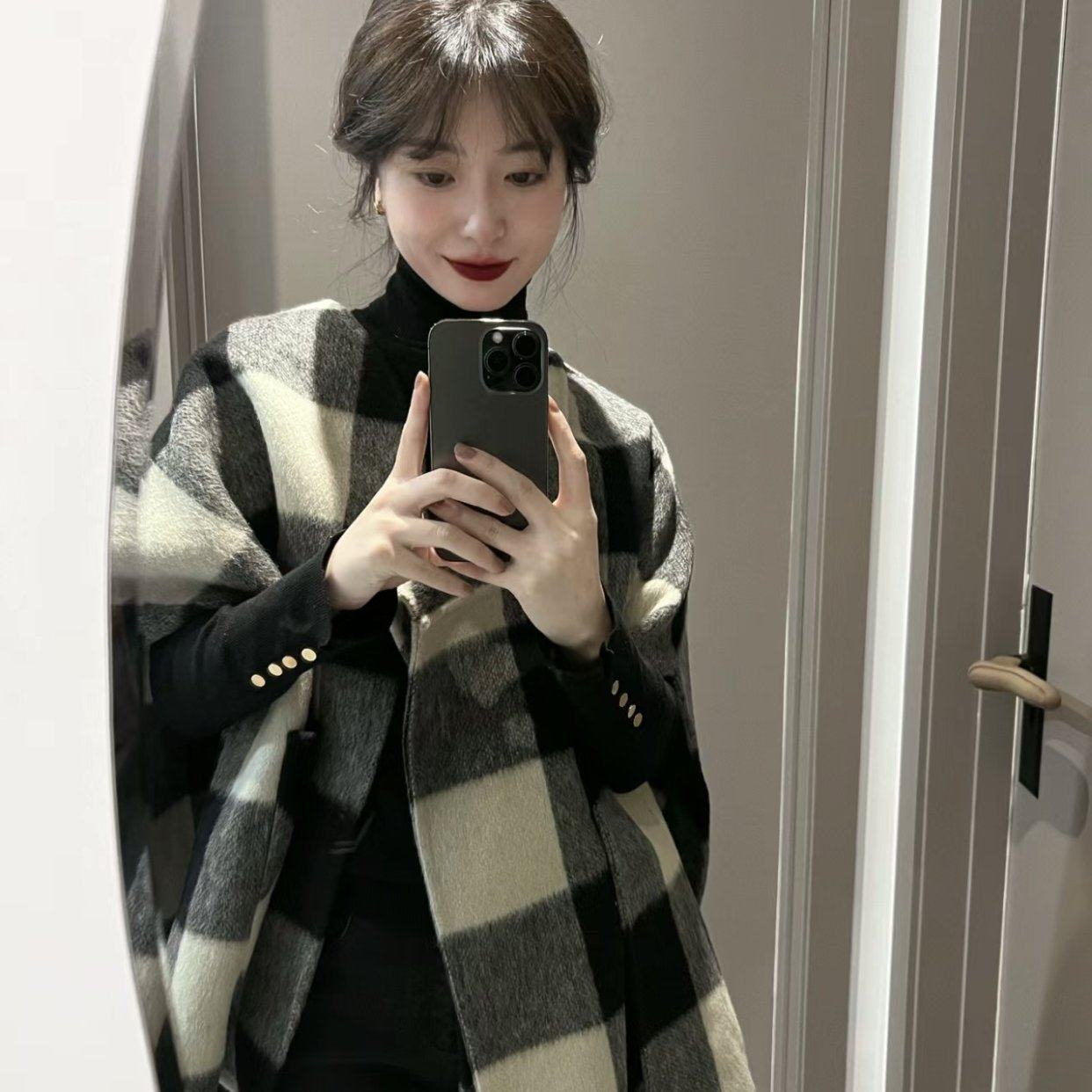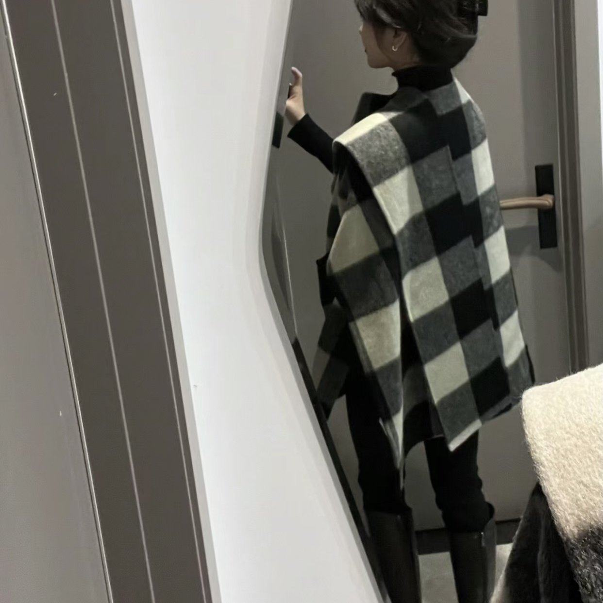 Lazy zoe蒙田的枫兔毛斗篷 法式复古气质披肩百搭口袋毛呢外套