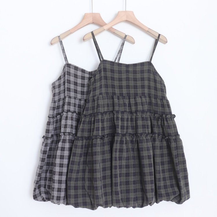 D09038日单新款客供料后松紧套头微宽松女甜美可调节格子吊带裙