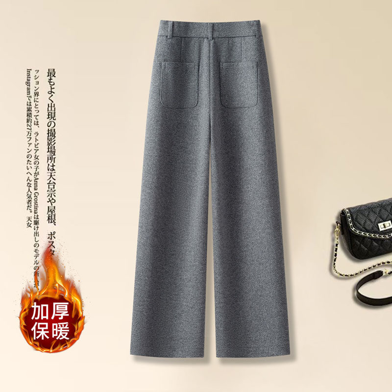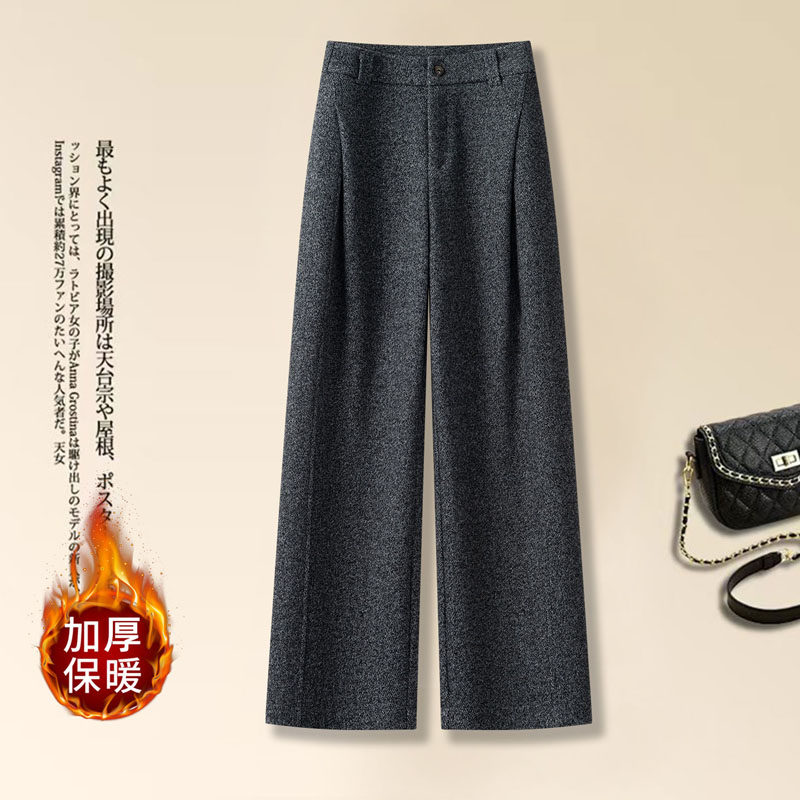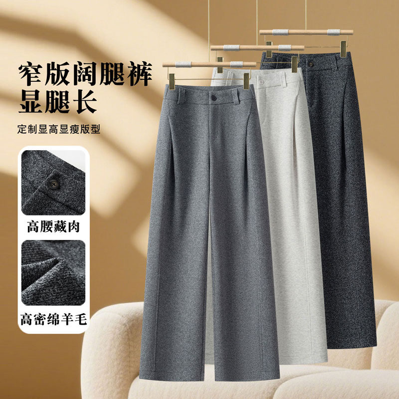 首页> 女装> 高腰毛呢宽松阔腿裤女2025新款显瘦保暖弯刀裤冬季穿搭垂感长裤