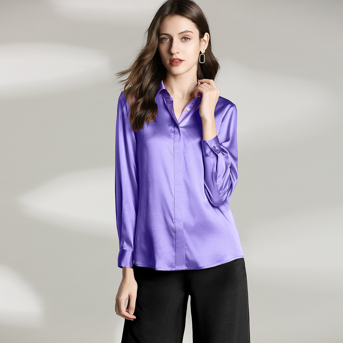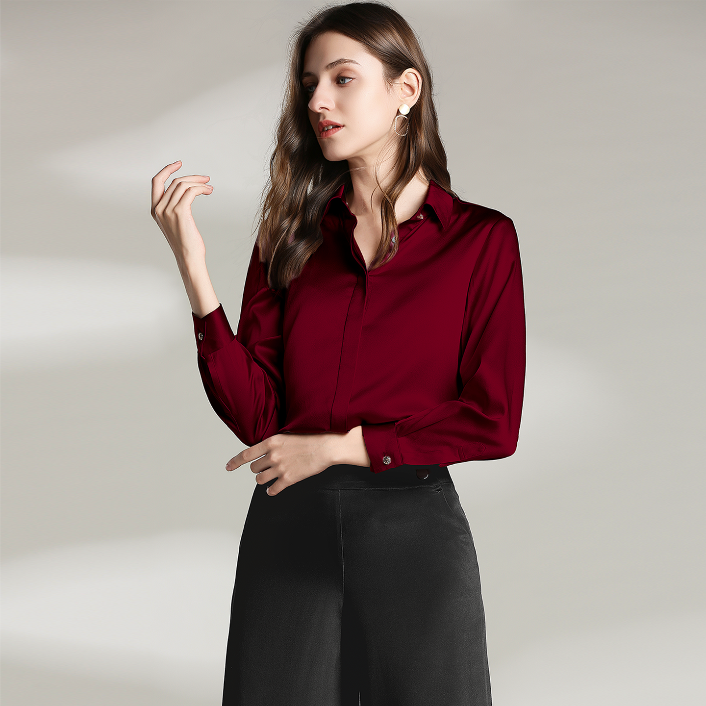 首页> 女装> 拓美真丝2025秋冬新款衬衫长袖气质暗门襟重磅桑蚕丝上衣女士衬衣