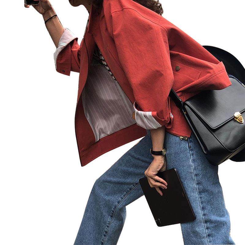 IT UNDER GARDEN 早春装复古工装拉链薄款外套女宽松显瘦休闲酒红