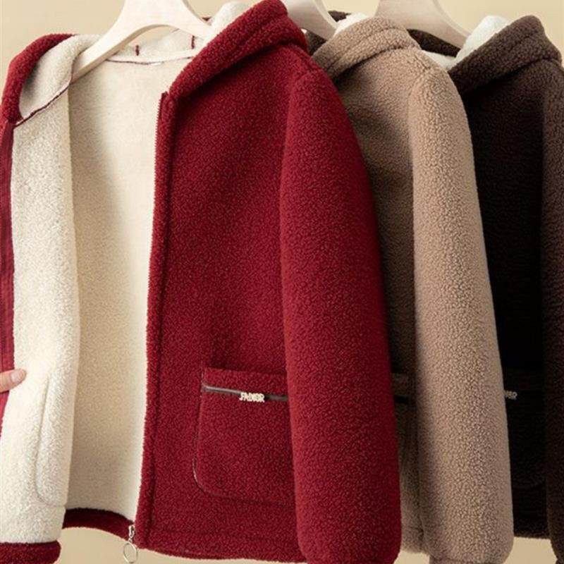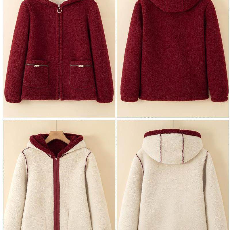颗粒绒外套妈妈连帽卫衣加绒保暖洋气上衣中老年人衣服奶奶秋冬装