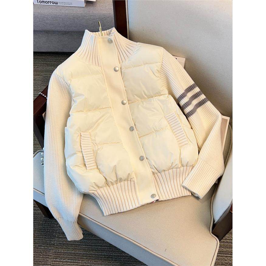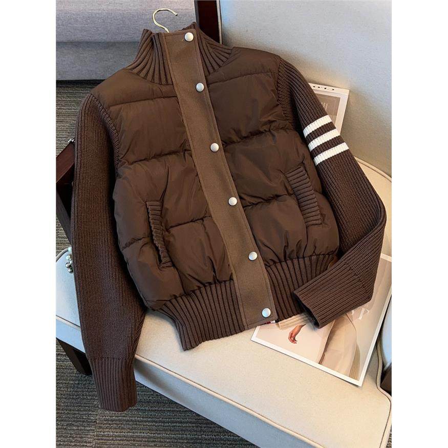 小个子立领短款棉服女冬季2025新款针织拼接设计感休闲棉袄外套潮