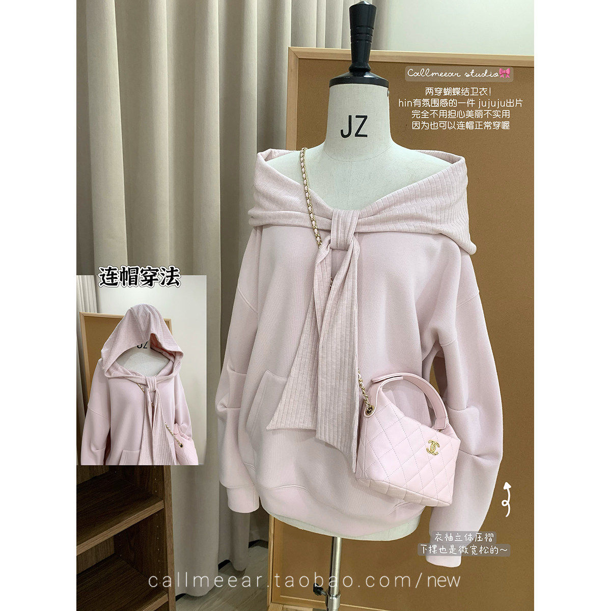 CallmeEar//【蝴蝶结卫衣】两穿设计感一字肩卫衣女连帽冬季上衣