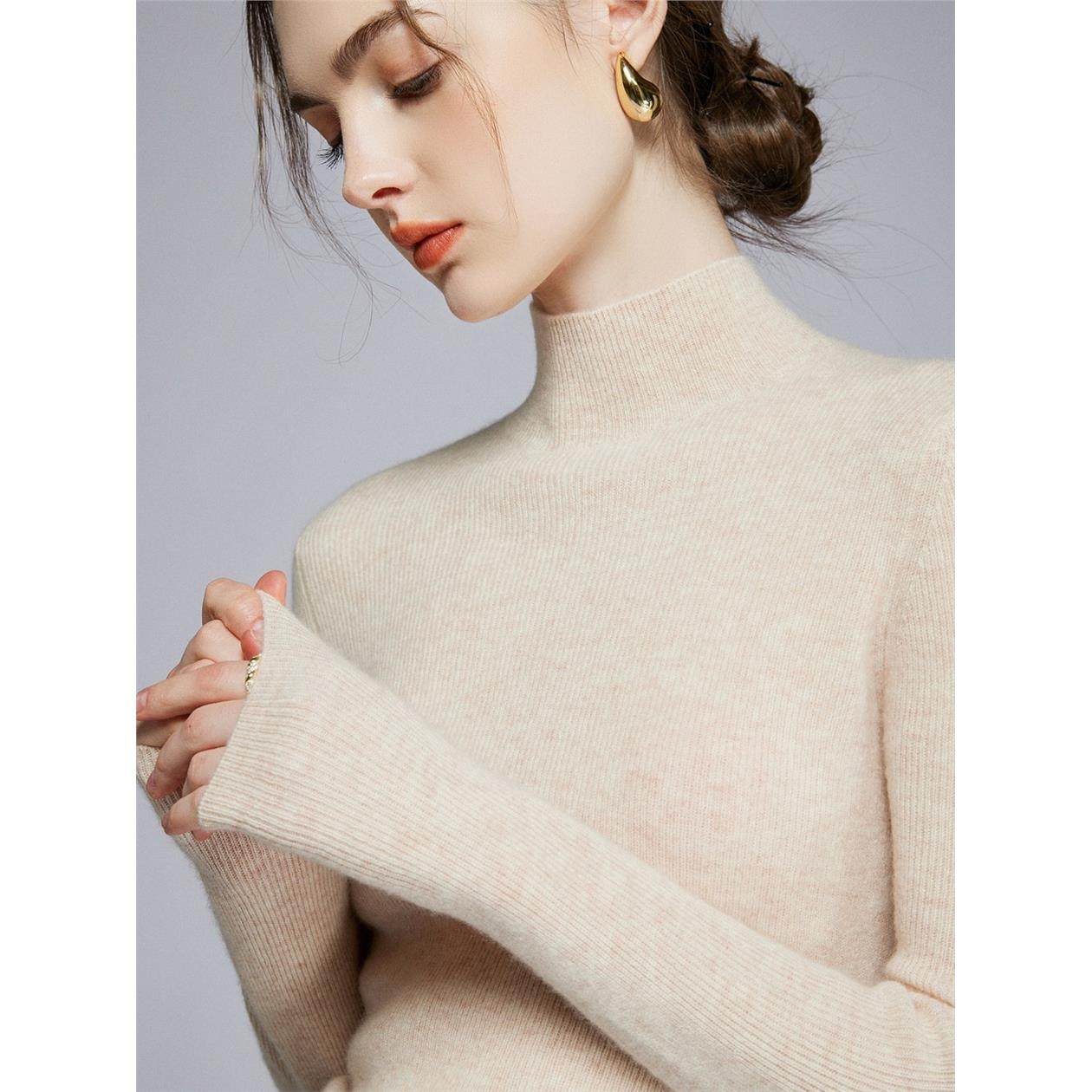 2025秋冬新款半高领纯色羊绒衫女套头内搭修身毛衣针织羊毛打底衫