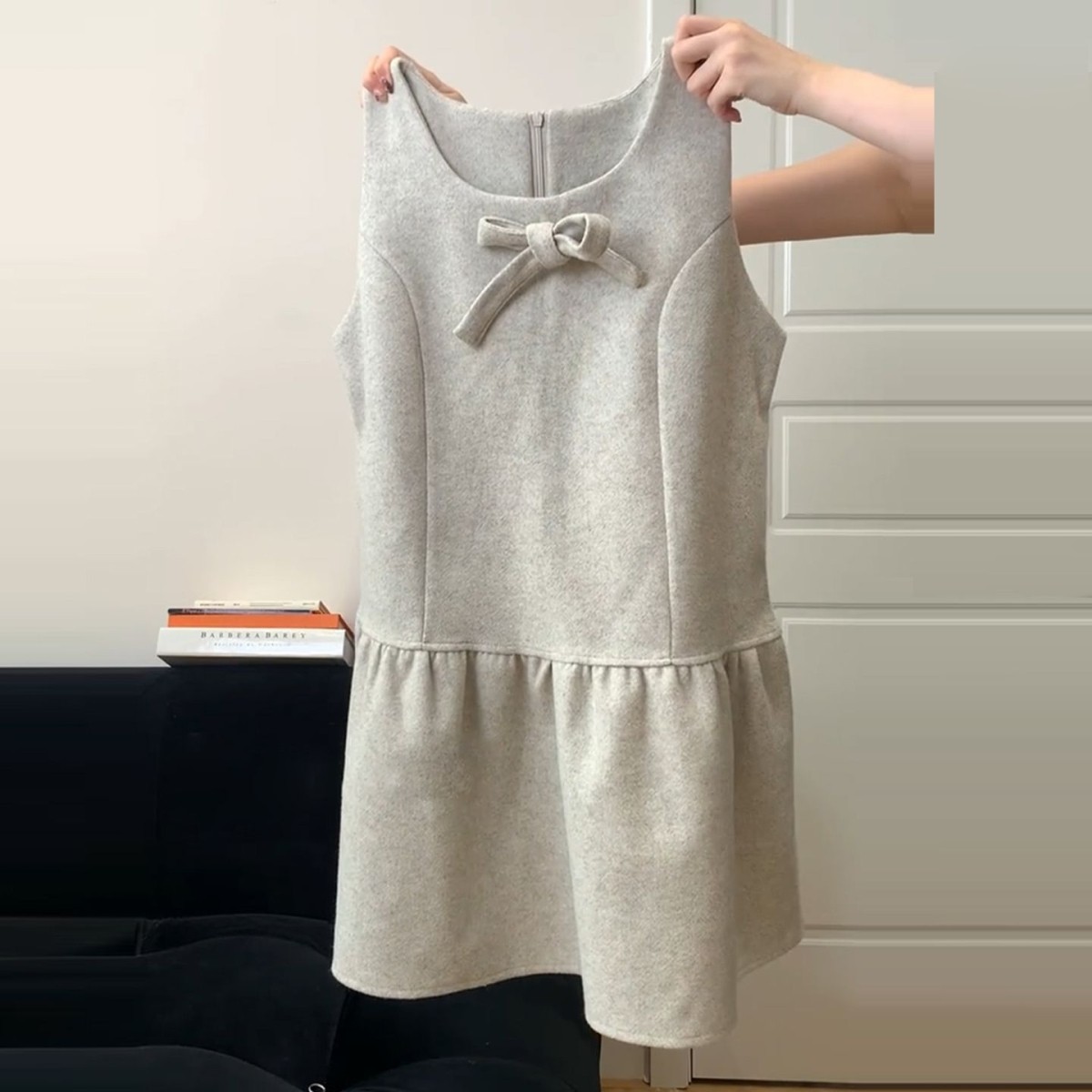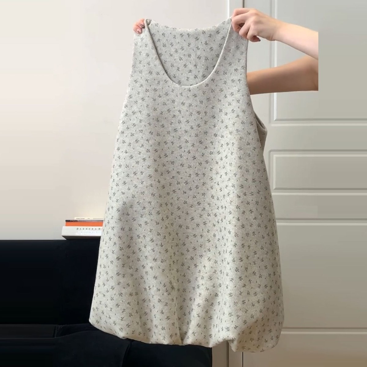 法式灰色碎花背心连衣裙子秋冬季2026新款巨好看新年穿搭花苞短裙