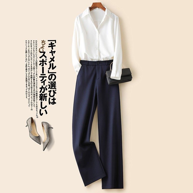 窄版阔腿裤女高腰垂感裤子女2025春秋新款直筒休闲西装裤春季长裤