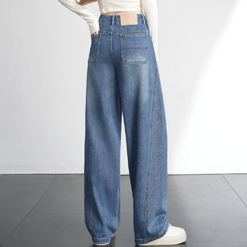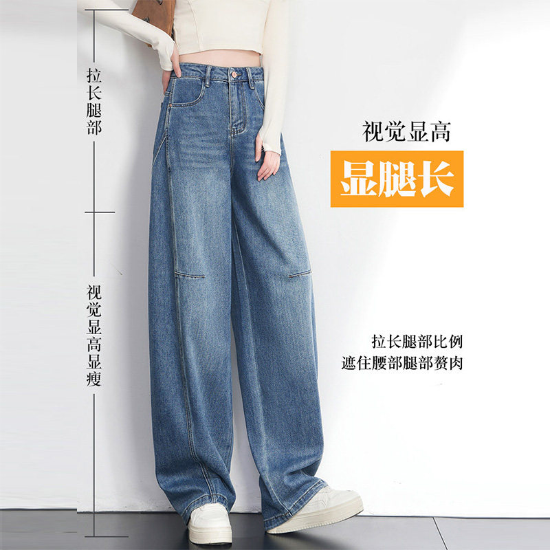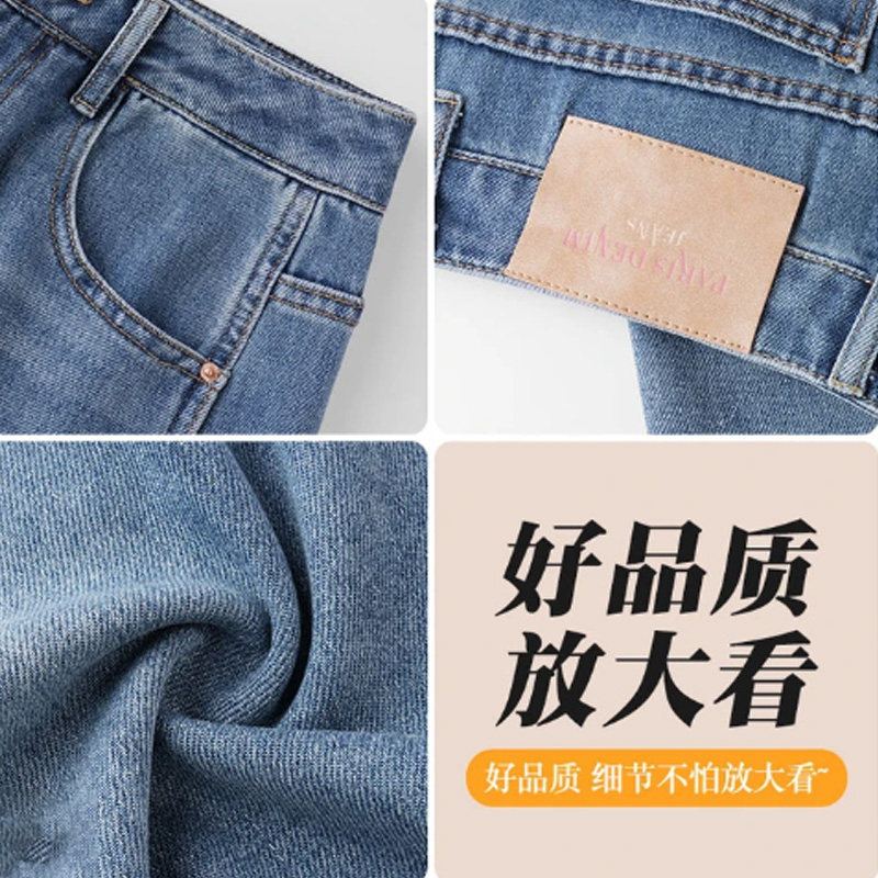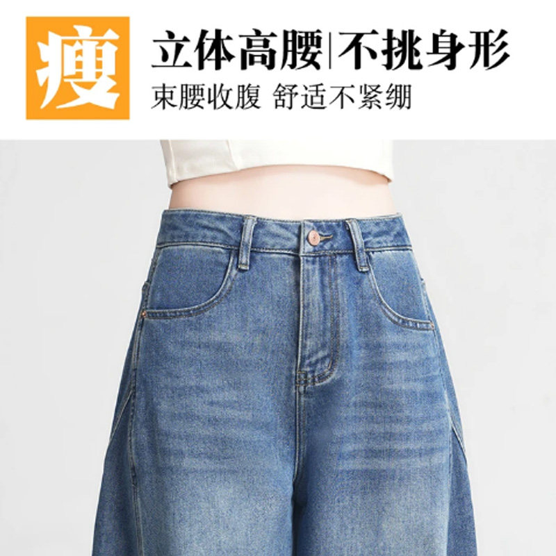 啄木鸟蓝色窄版牛仔弯刀裤女2025秋冬高腰宽松显瘦香蕉裤直筒裤