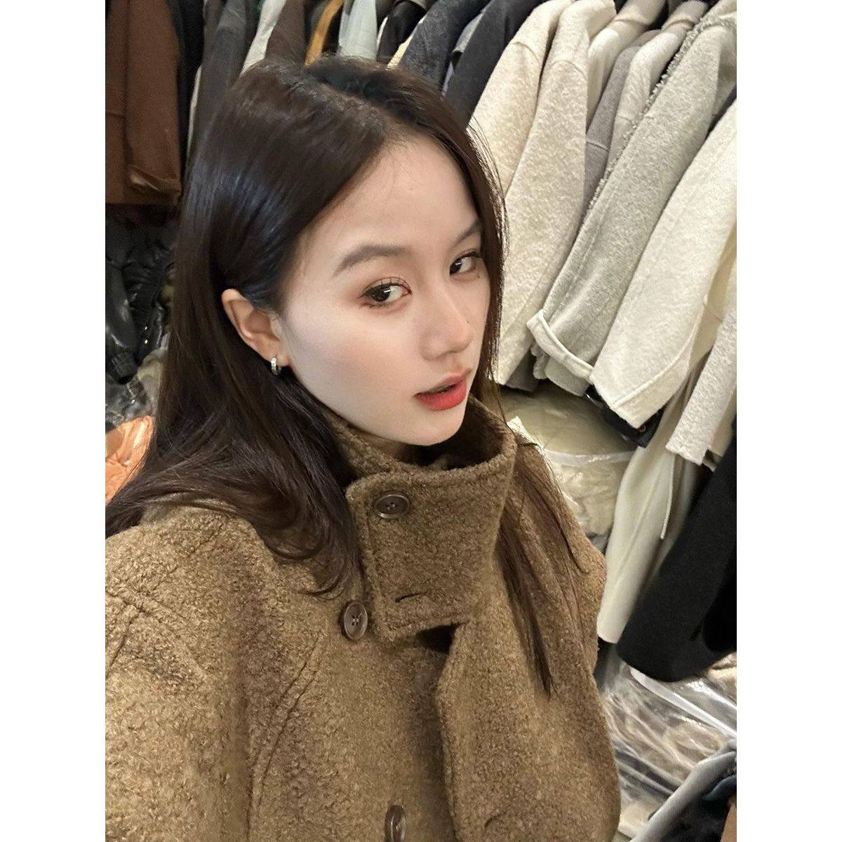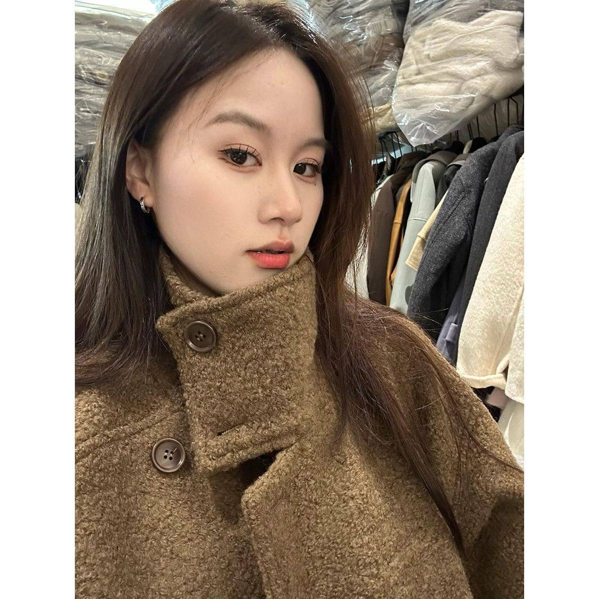 【冬风知味】韩系高级感气质立领呢子大衣女冬新款咖啡色毛呢外套