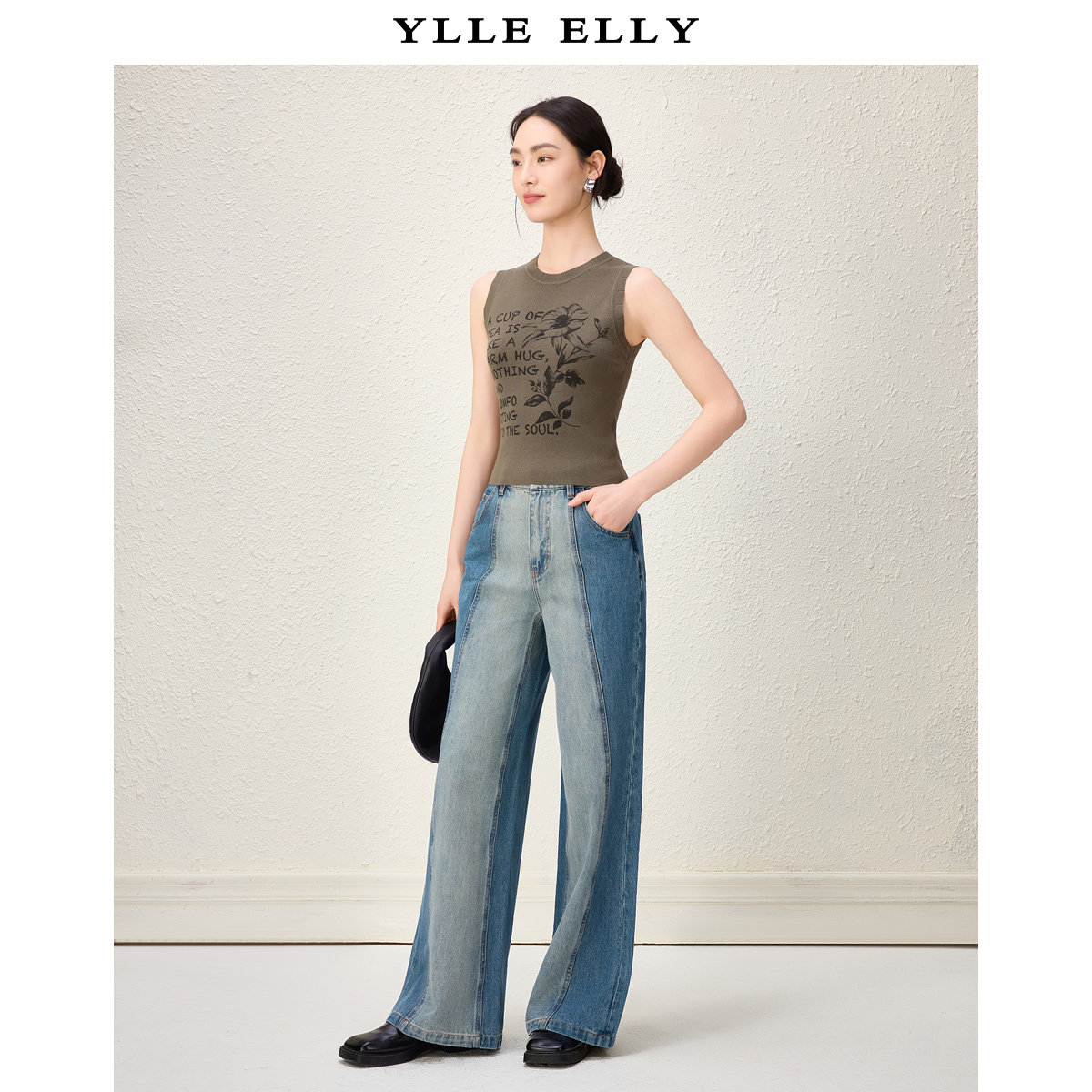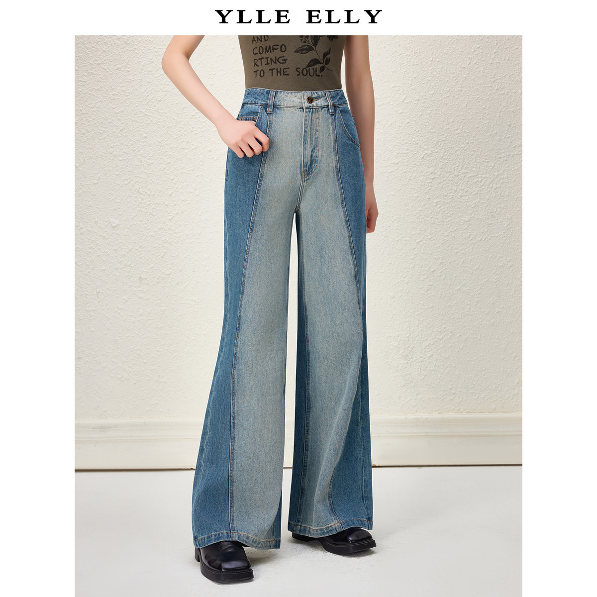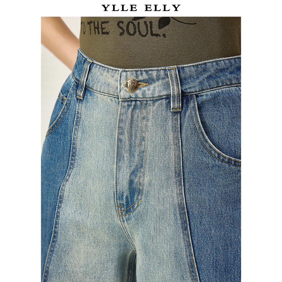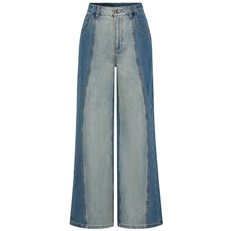 【粉丝专属】全棉牛仔裤秋季新款时尚撞色拼接百搭显瘦阔腿裤女Y1