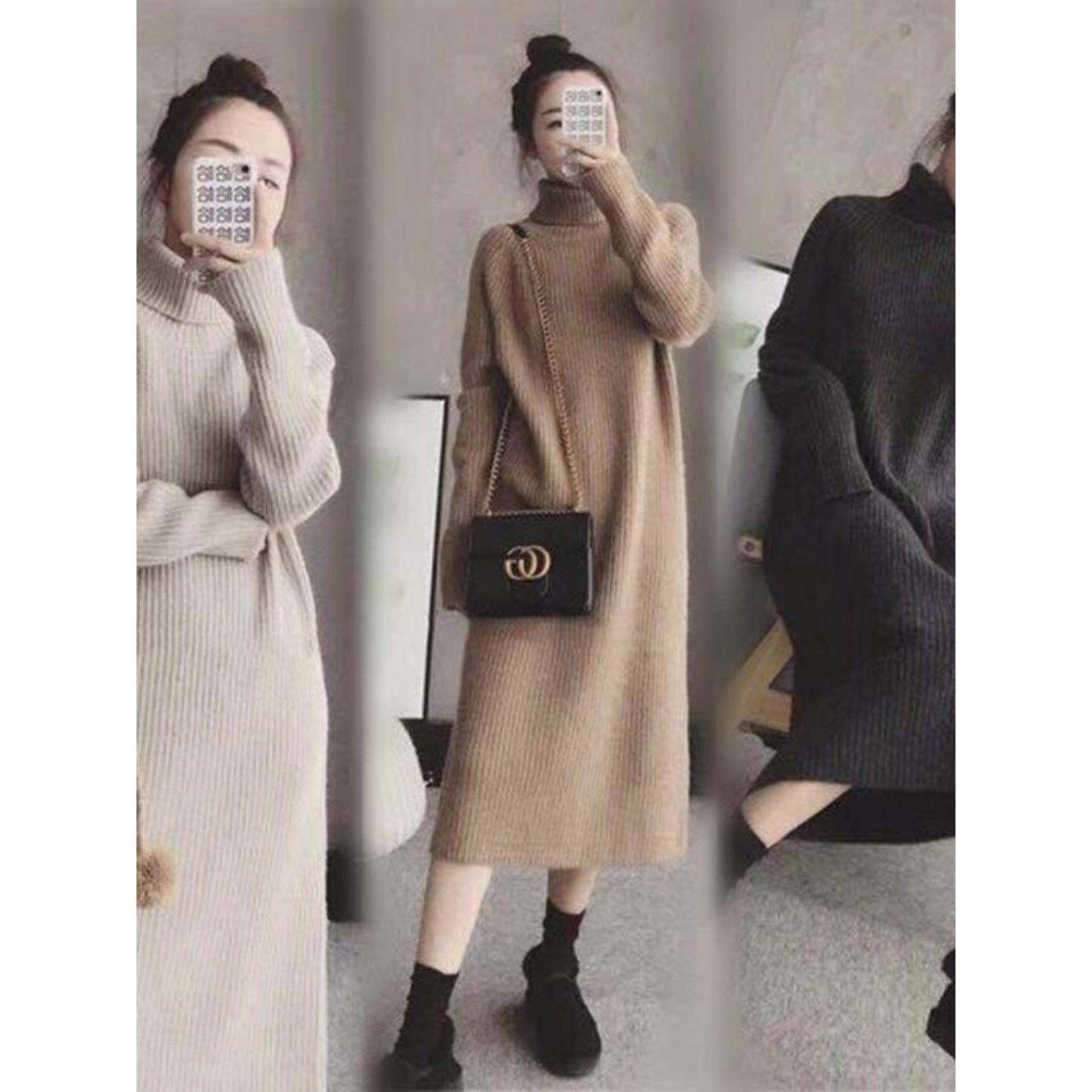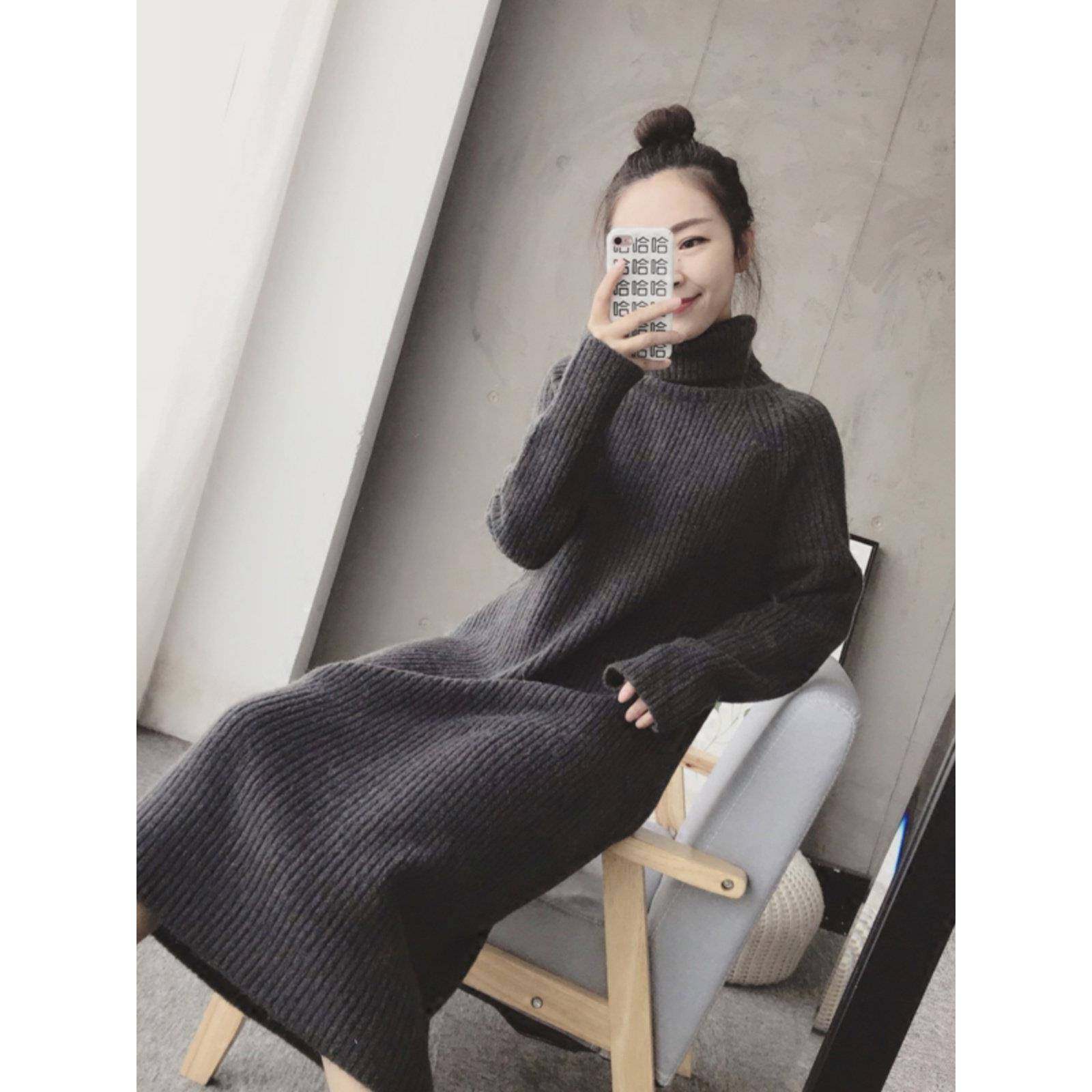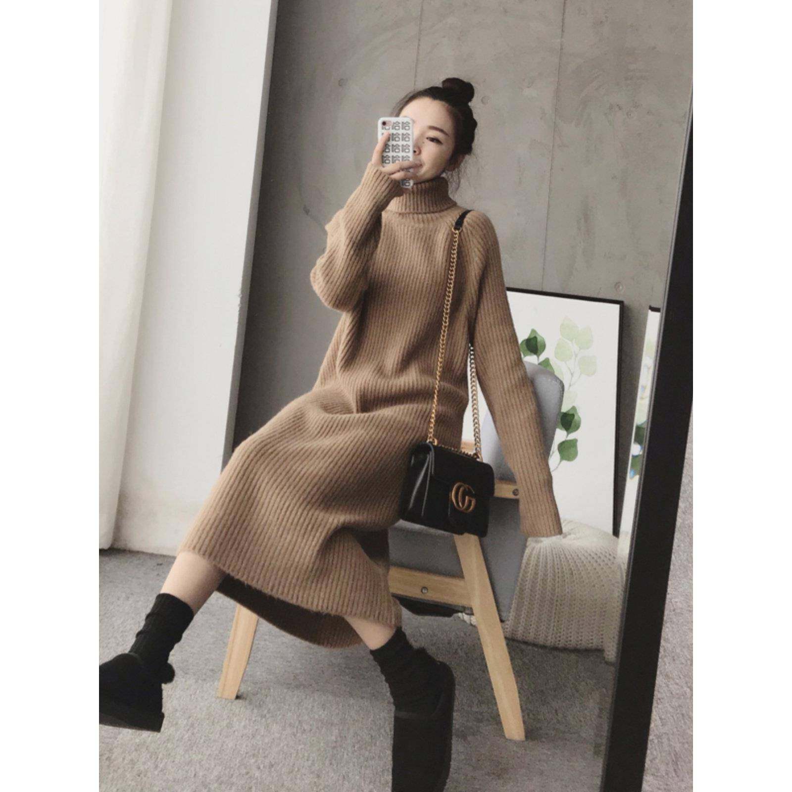 首页> 女装> 香港毛衣裙女大码胖mm秋春新款中长款高领加厚过膝打底针织连衣裙