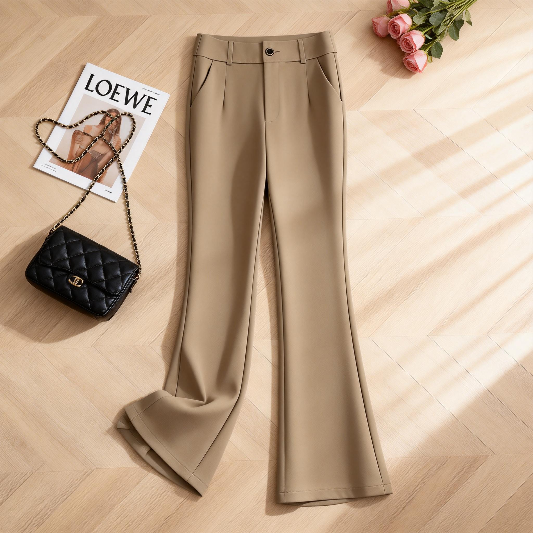 首页> 女装> 小个子微喇裤女春秋新款修身显瘦气质西装裤百搭冬季加绒九分女裤