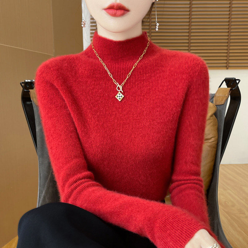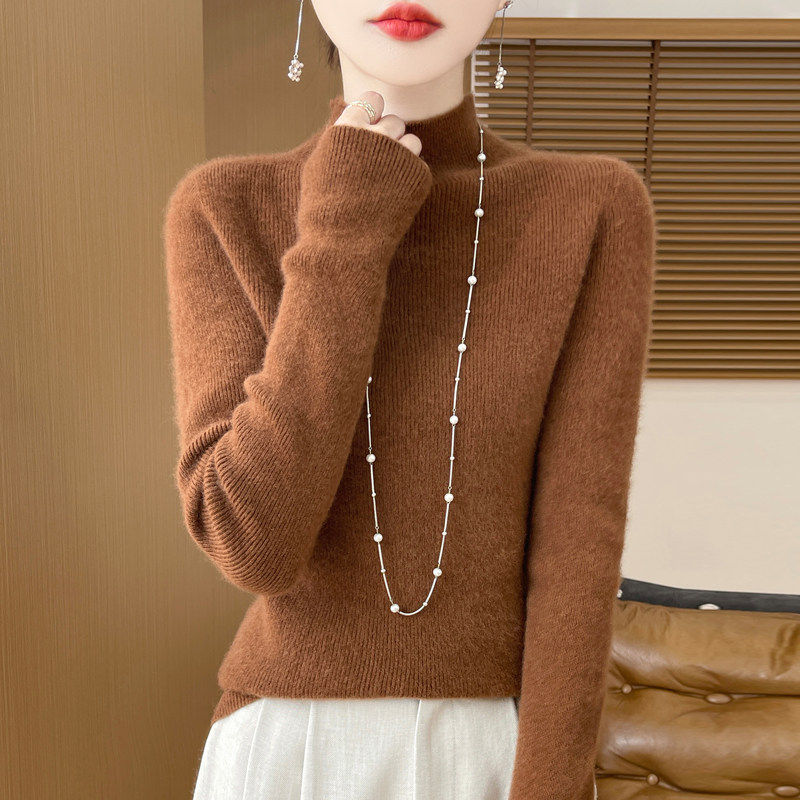 半高领加厚打底衫女2024秋冬新款时髦配大衣修身内搭超保暖针织衫
