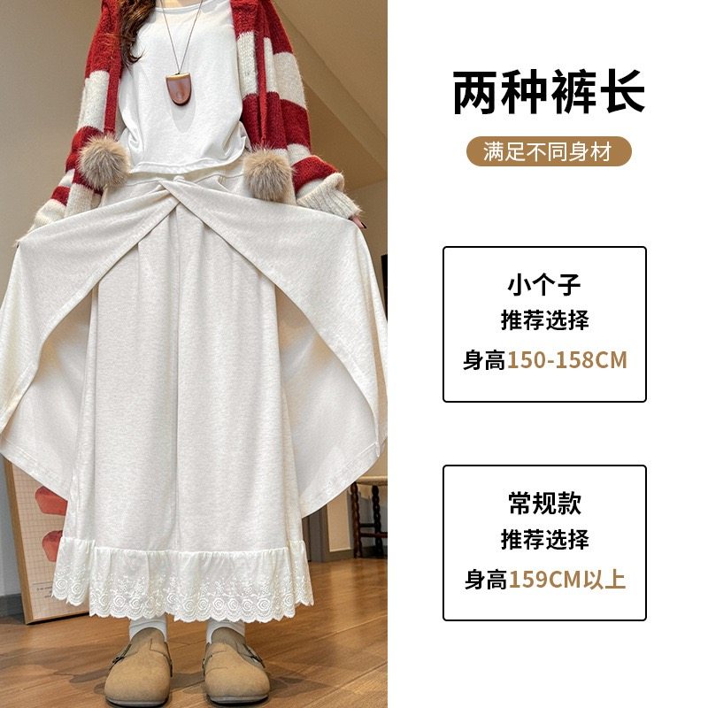 甜美蕾丝花边阔腿裤裙女2025年秋冬新款高腰垂感宽松休闲裤