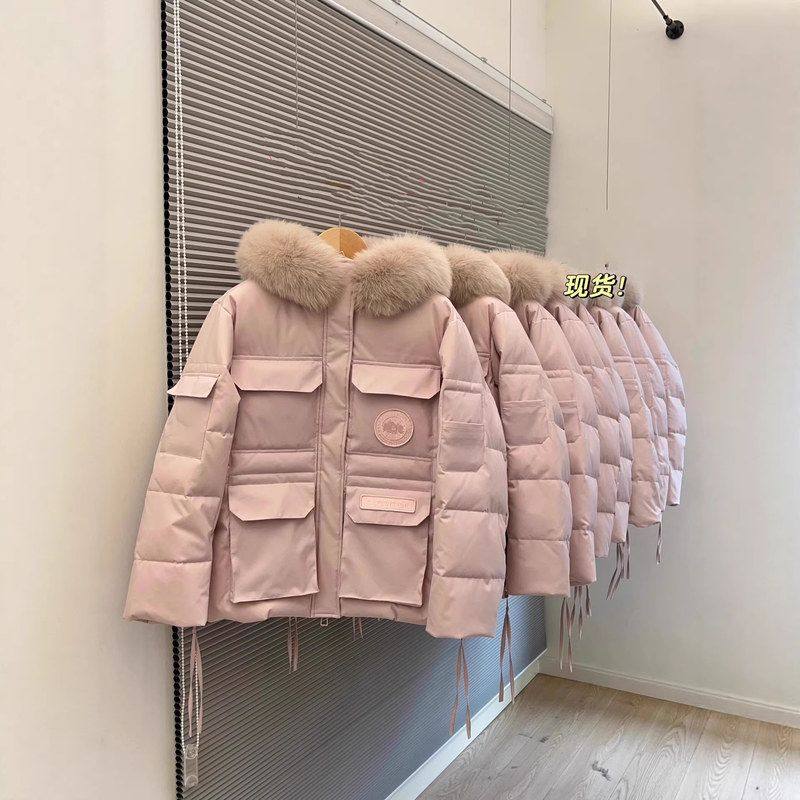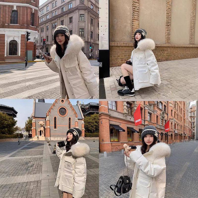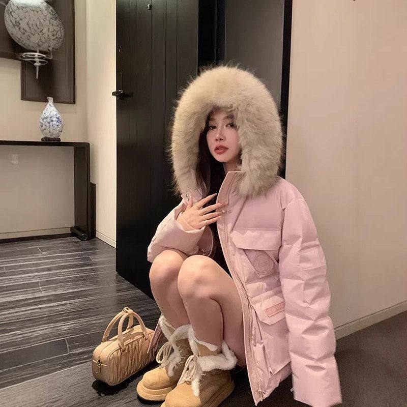 工装毛领高级加厚棉衣2025粉色冬季女派克新款百搭防寒外套