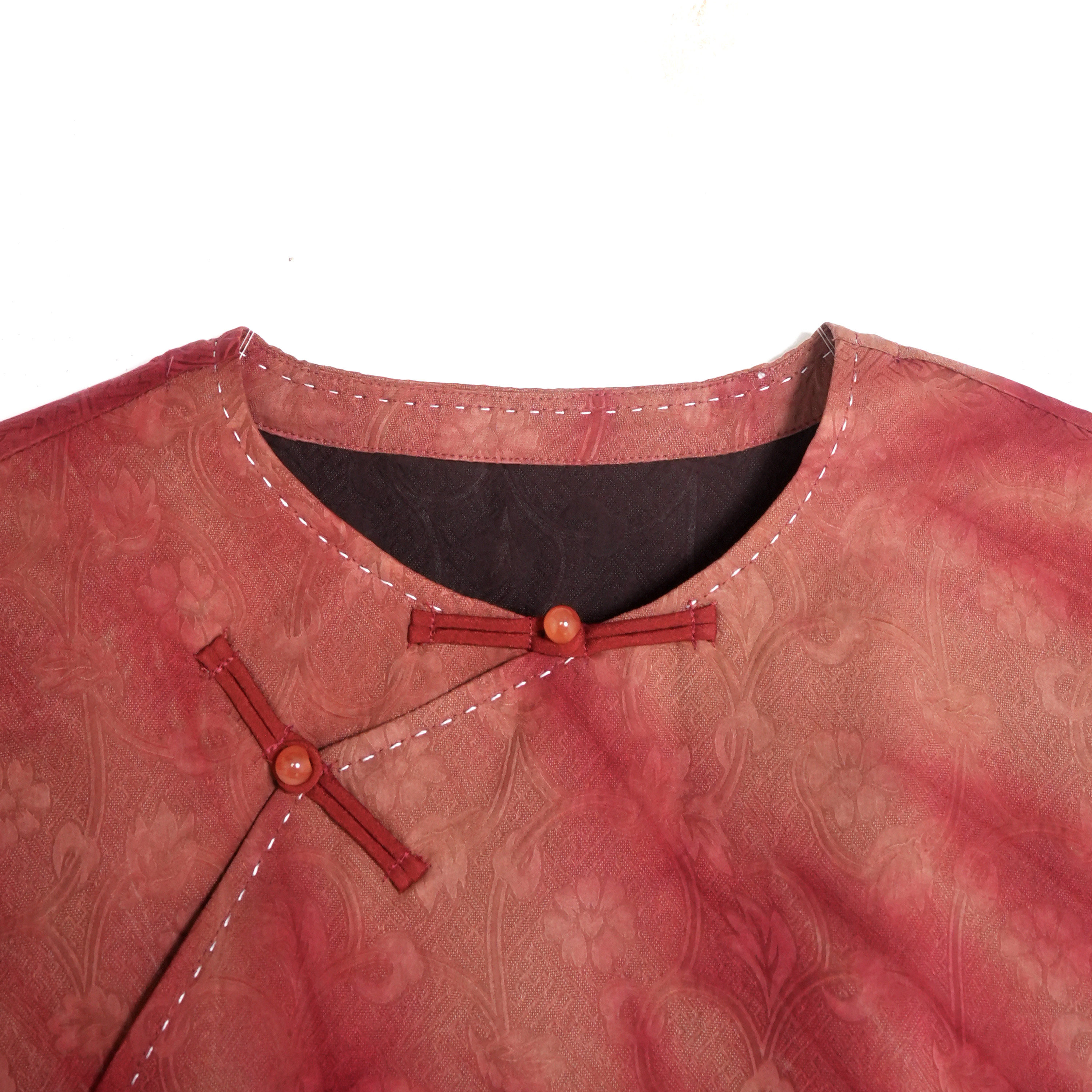 首页> 女装> 【昭愿】徐淼淼国风新中式扎染红云纱时尚桑蚕丝长袖上衣CV1854