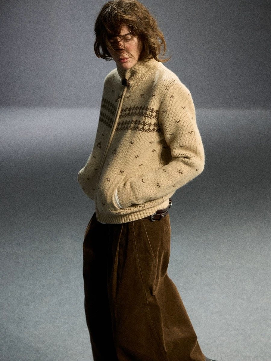 THE SHY STREET棕色圣诞考津毛衣COWICHAN CARDIGAN