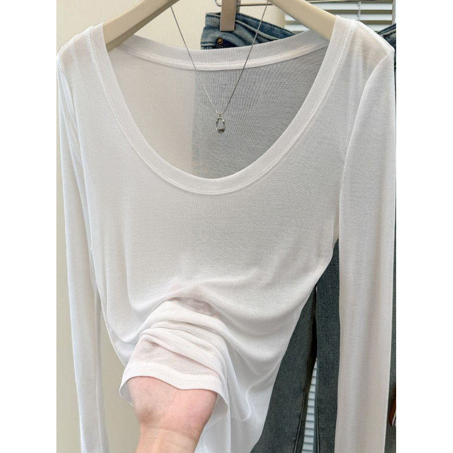 奥特莱斯~余单大牌U领长袖防晒衫女夏季韩版修身微透薄款罩衫T恤