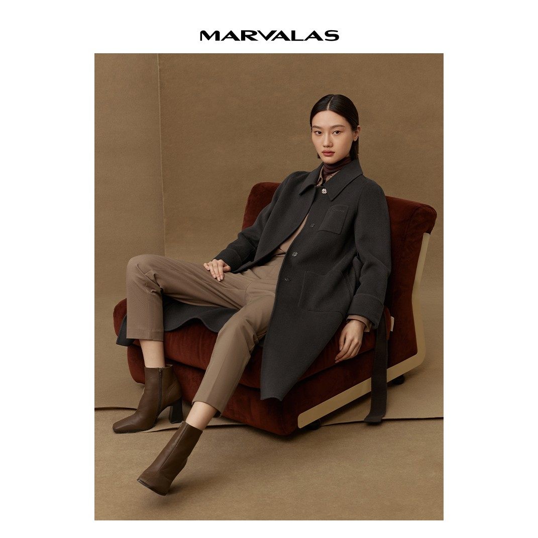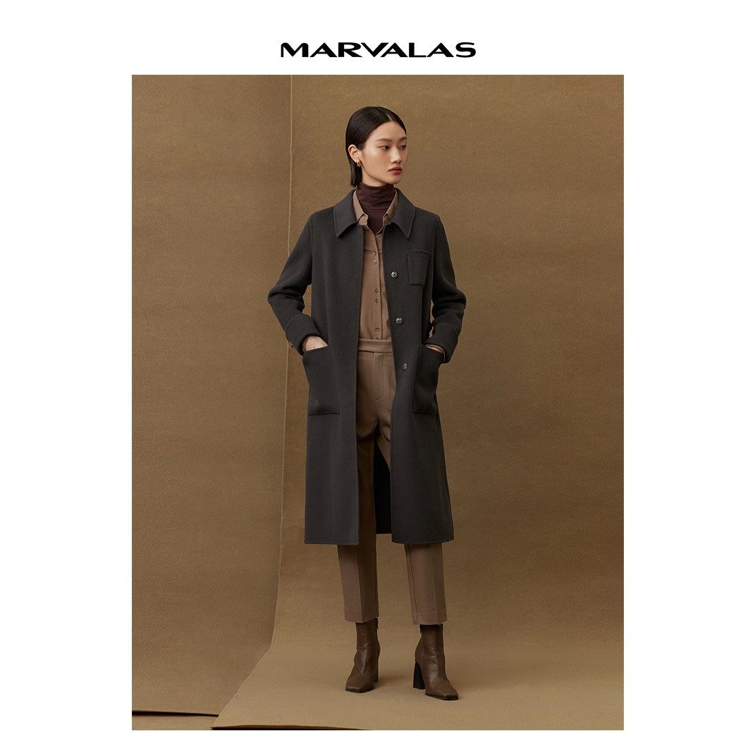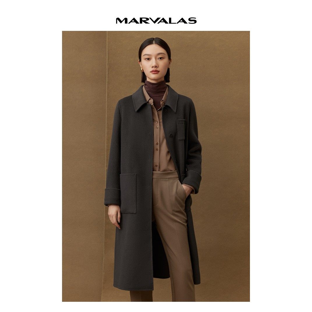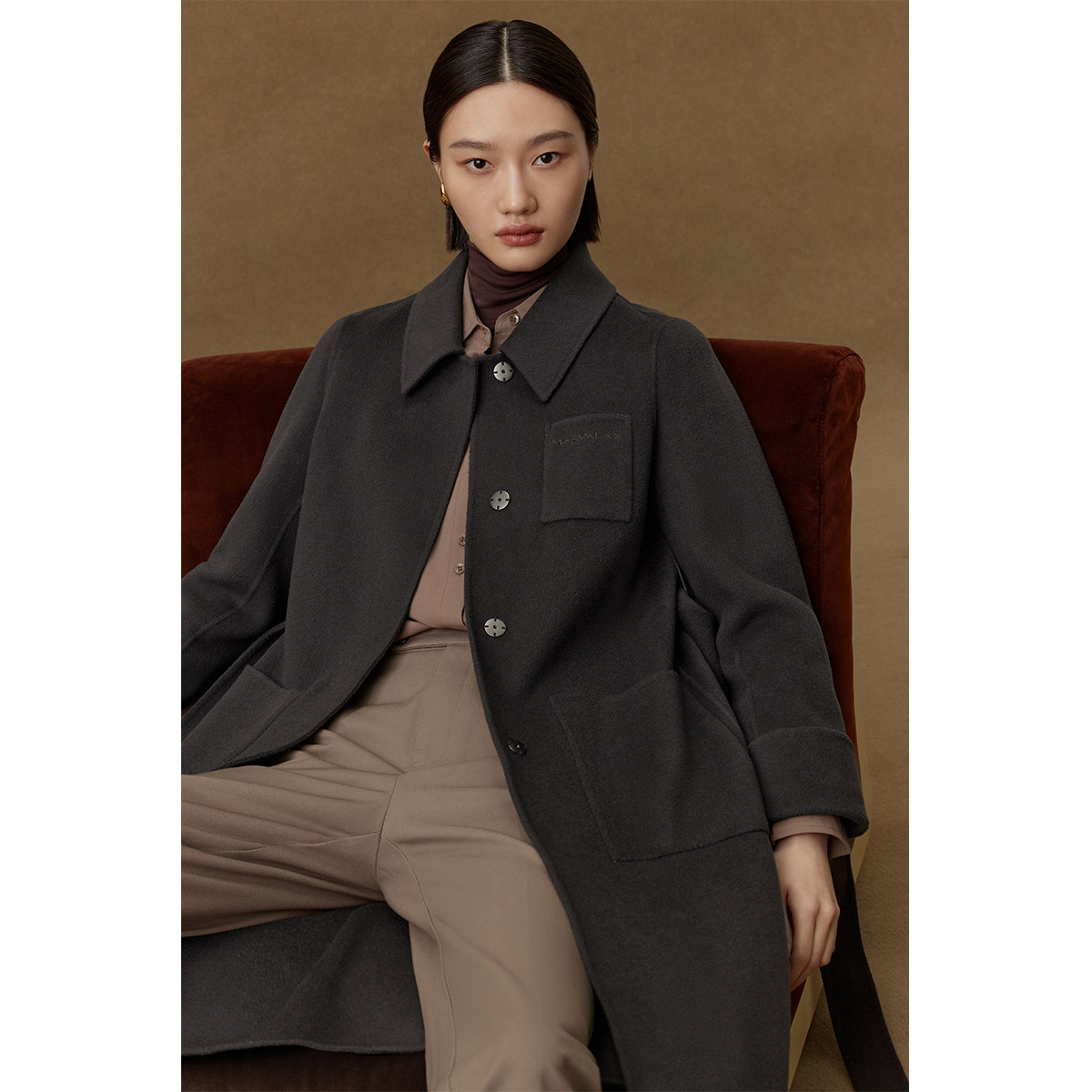 【粉丝专属】【商场同款】曼德诗全羊毛长款外套秋冬刺绣双面呢大