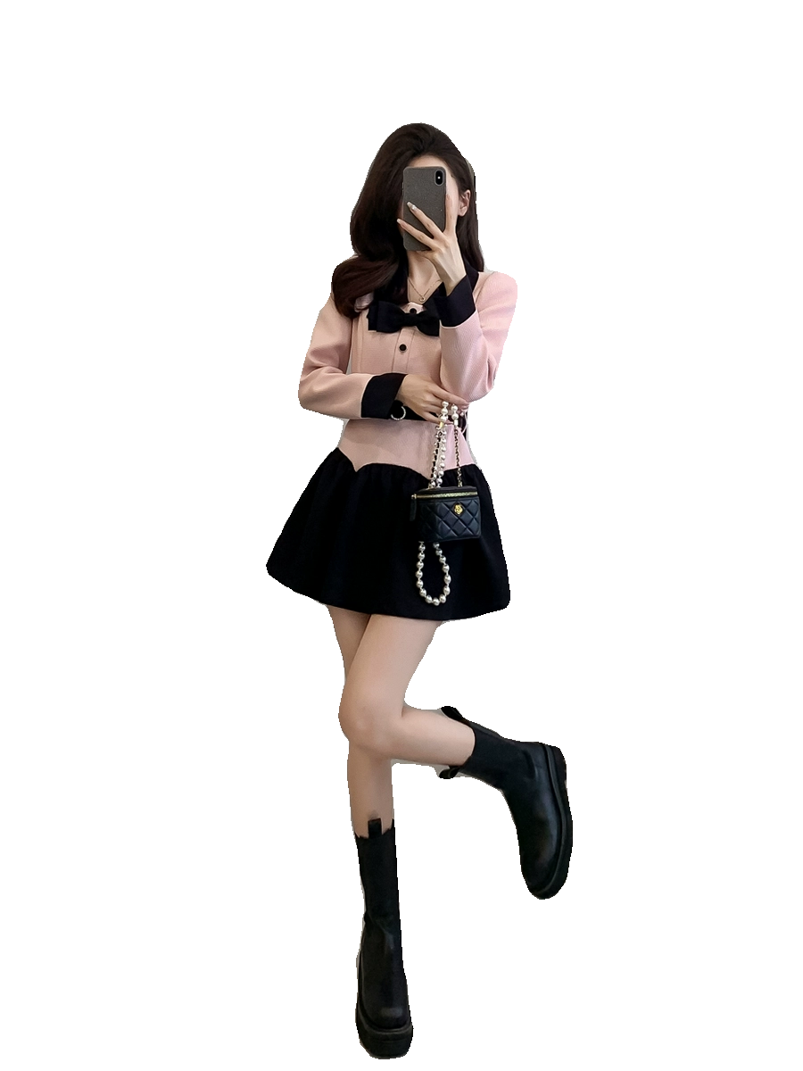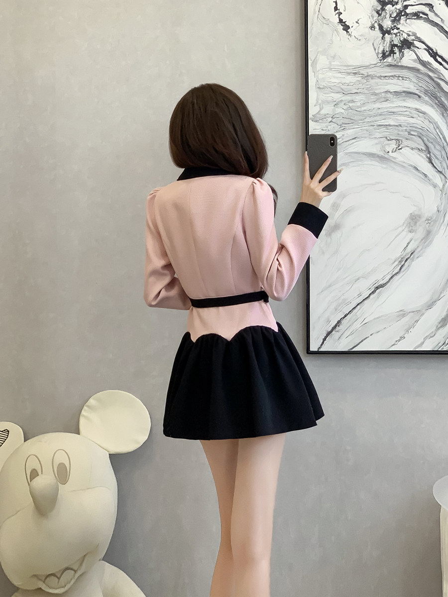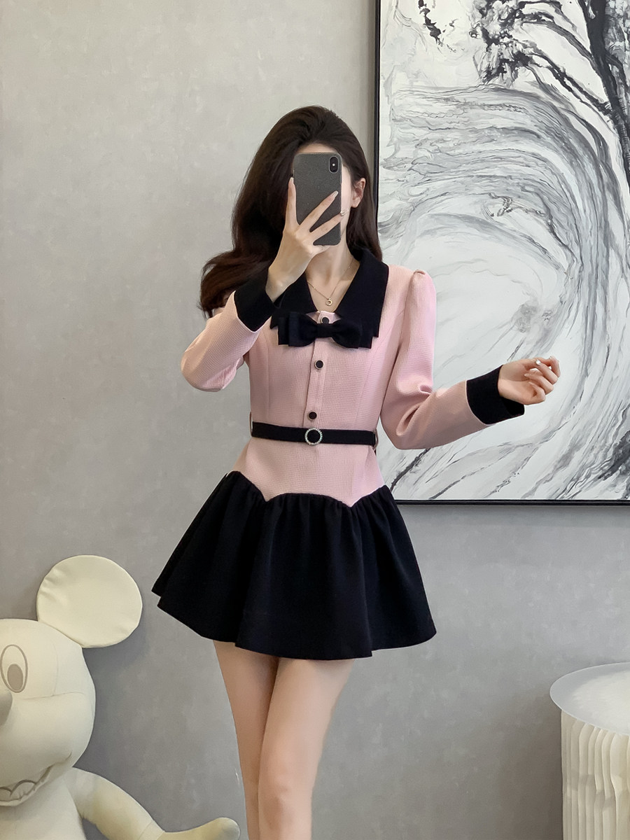 法式娃娃领长袖连衣裙减龄春装新款小香风甜美假两件收腰a字裙子