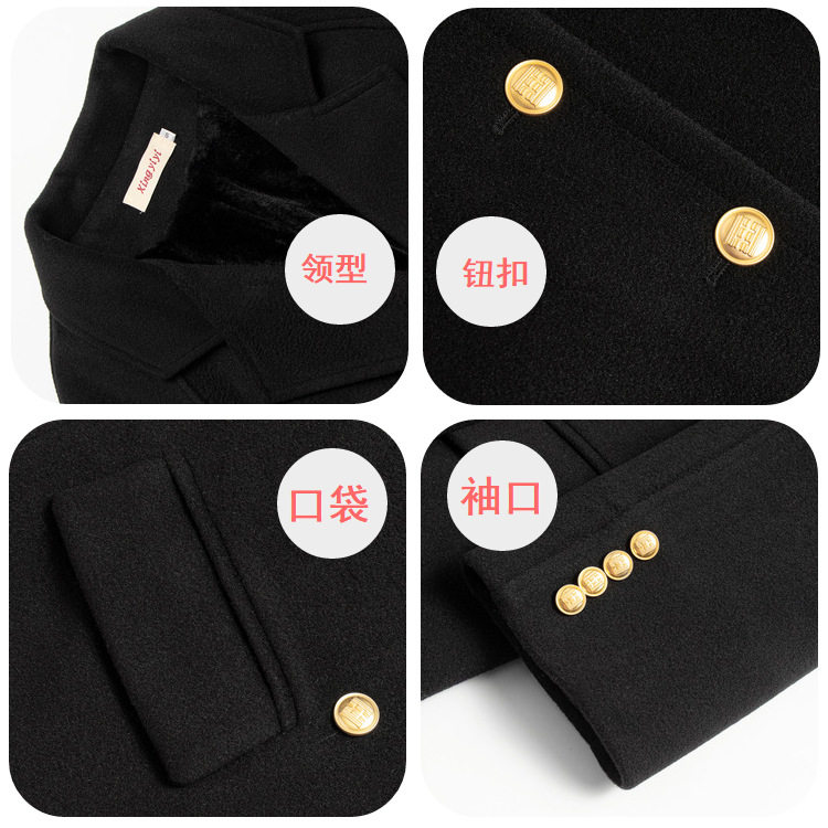 黑色毛呢子大衣毛外套秋冬加绒加厚高级感中长款保暖呢大风衣外套