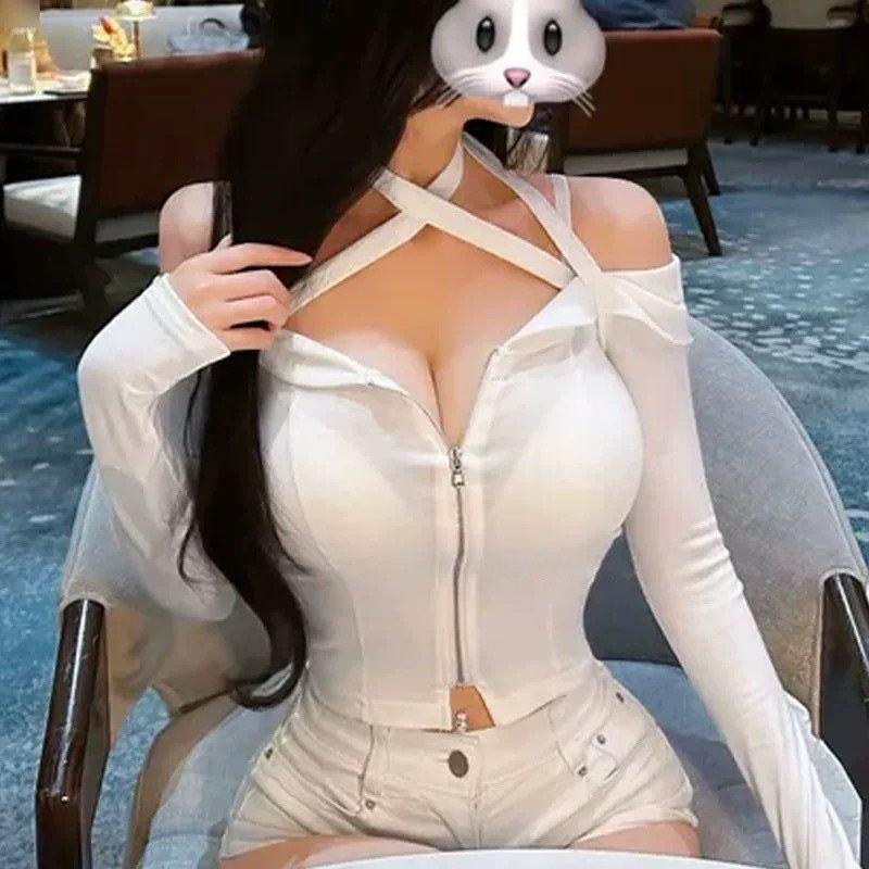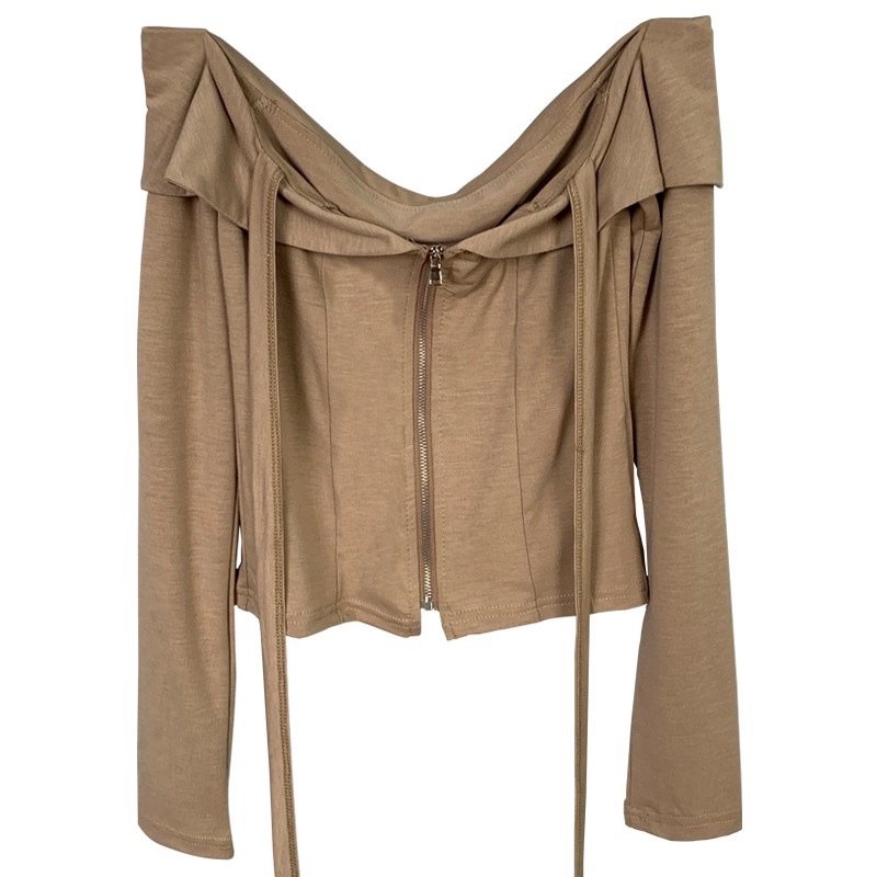 韩国东大门新款清纯韩妹儿~纯欲低胸绑带露肩挂脖小开衫长袖T恤女