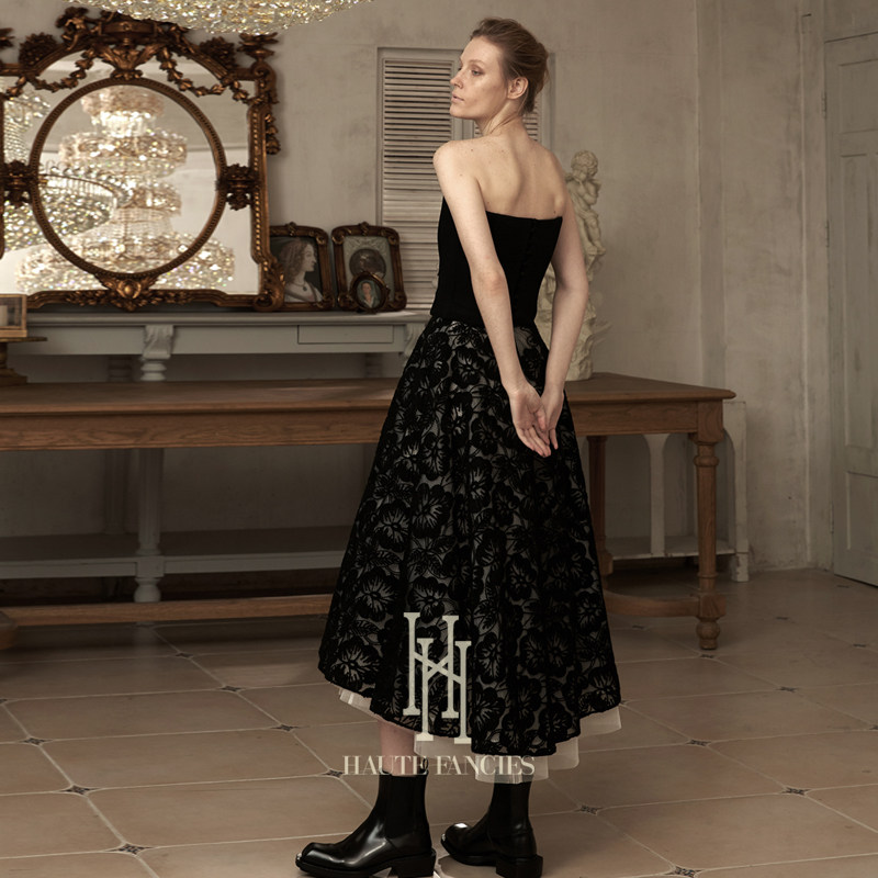 人间富贵花HAUTE FANCIES后构想|黑色法式精工蕾丝小洋裙半裙25秋